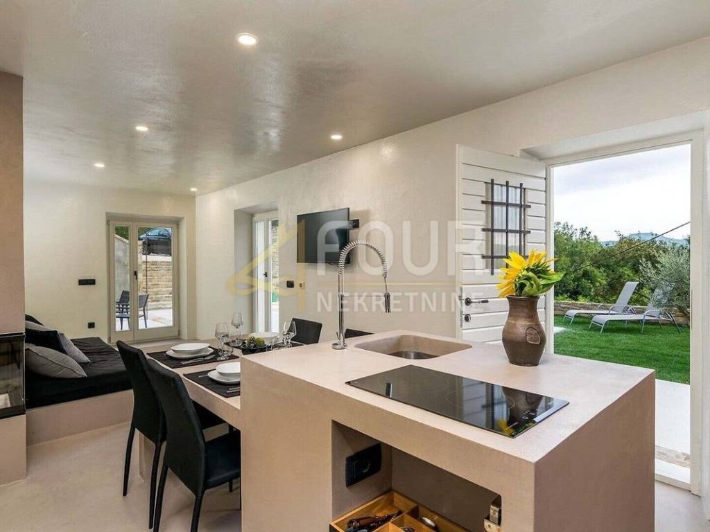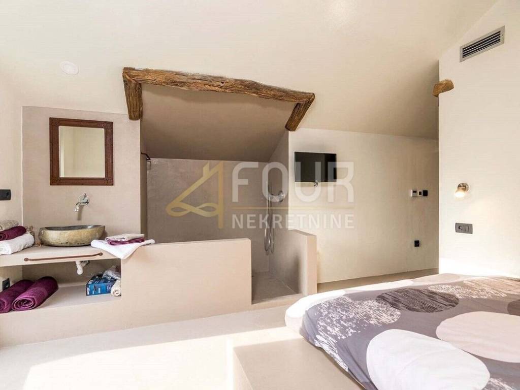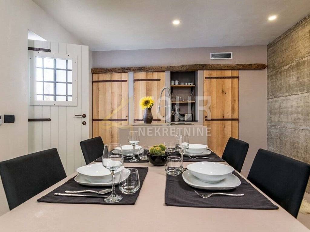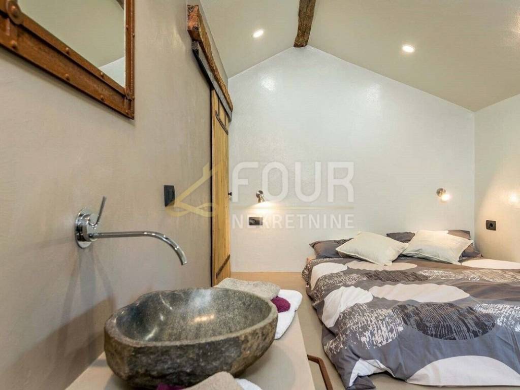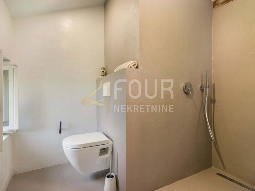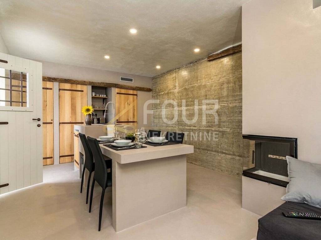 We offer a beautiful Istrian stone house with a swimming pool and a view of the famous town of Motovun. The house has been completely renovated in an authentic Istrian style, with a combination of stone and wood, and is superbly decorated and equipped! On the ground floor there is an open space kitchen with a dining room and a living room and a spa area with a sauna, while on the first floor there are two bedrooms, two bathrooms and a toilet. On the large and well-maintained garden there is a 24m2 swimming pool with a sun deck, a barbecue with a dining area and 2 parking spaces. The entire house is equipped with underfloor heating and air conditioning. Great opportunity for an investment in a tourist rental!