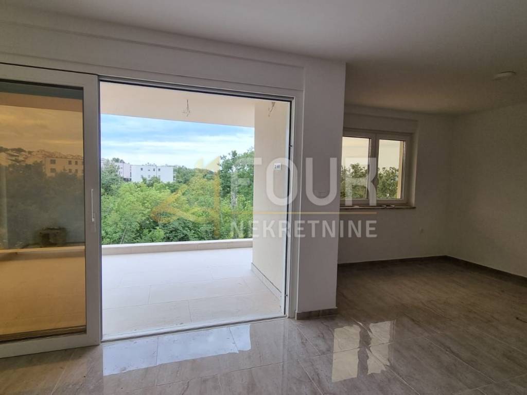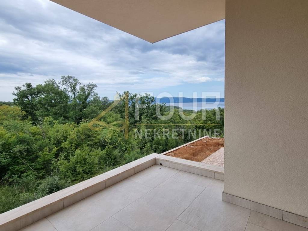 In a quiet part of Njivice on the island of Krk, an apartment with two bedrooms and a living room is for sale, located on the first floor of a semi-detached building with its own private entrance. It is oriented to the south and west, offering plenty of natural light through the windows and wall glass panels.