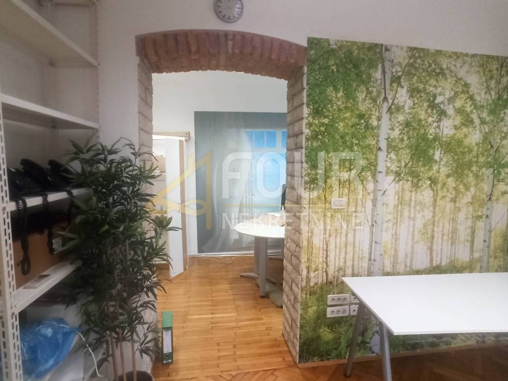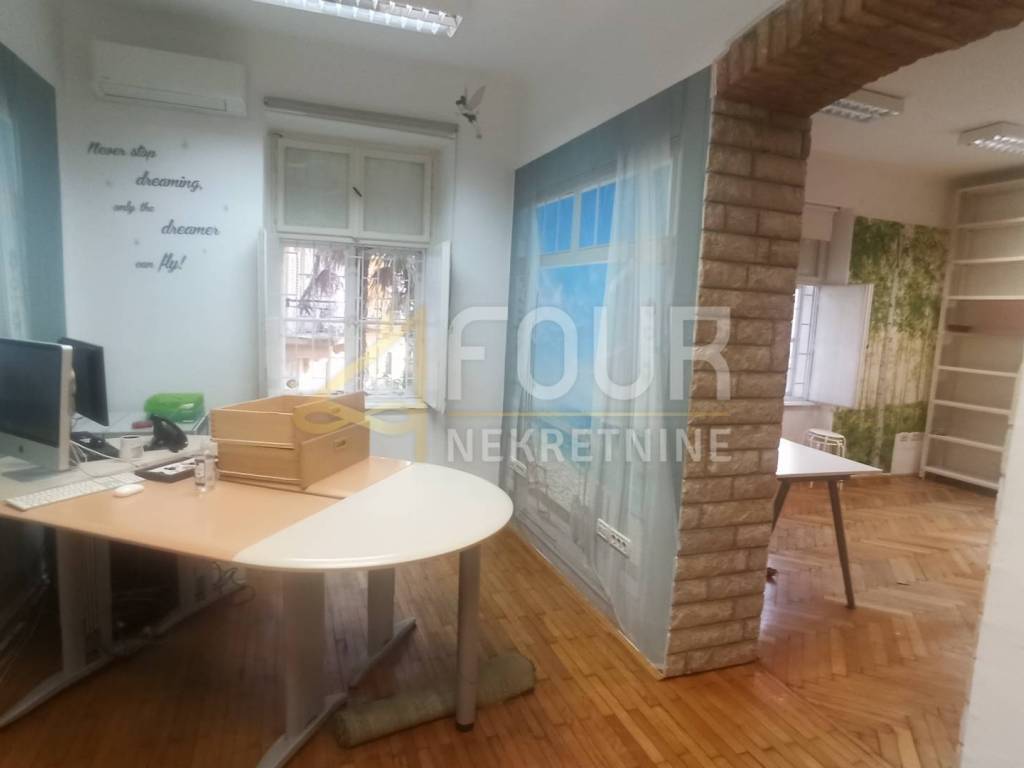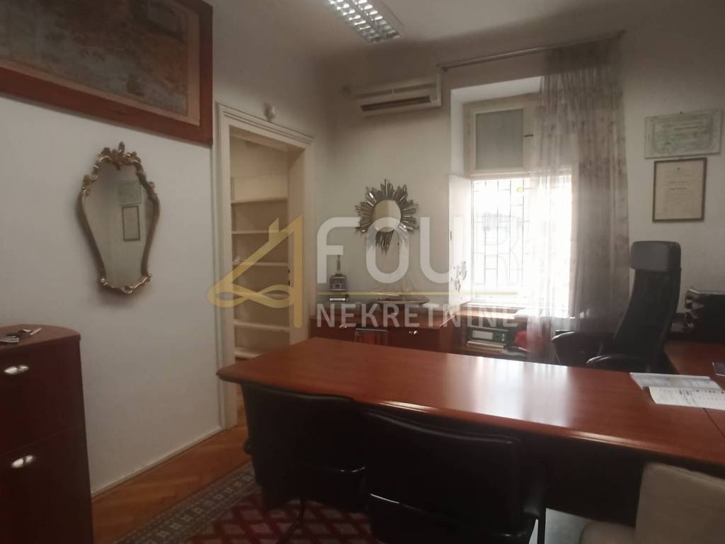 The last major renovation was done around 2010, when the wooden mezzanine construction was replaced with a concrete slab, new parquet floors were installed, and the water and electricity were renewed. The roof of the building was also renovated. The apartment has wooden joinery, air conditioning, security doors, an alarm system, and high-quality parquet flooring that only requires sanding and varnishing. The space has served as a business office for years, so there are protective bars on the windows and internal metal shutters.