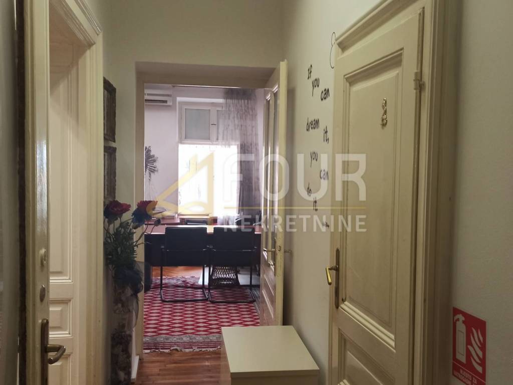 An apartment in an Opatija villa in the very center of Opatija, situated on a quiet street close to all amenities, is for sale. Located on the high ground floor, it has a living area of 60.60 m2. It consists of three spacious rooms, a bathroom, a hallway, and an accompanying terrace of approximately 18 m2, which is located in front of the house. It is oriented towards the north, south, and east - ensuring plenty of light and a pleasant stay throughout the day.
