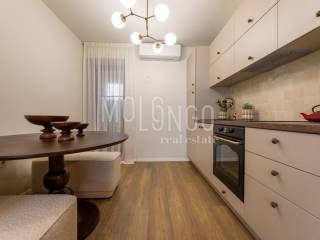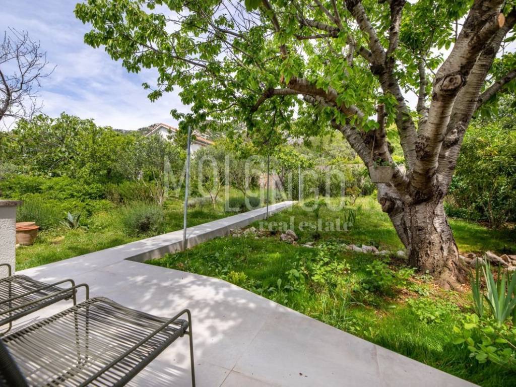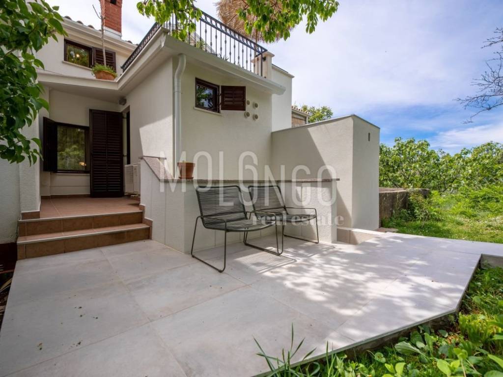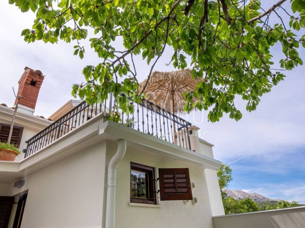 Baška, Draga Bašćanska, sale of a designer stone house in a row, 128.55 m2, with a landscaped garden of 100 m2, 4000 m from the beach and the center of Baška. The house consists of a ground floor with a living room, kitchen, dining room, hallway, staircase, tavern with an area of ​​13.30 m2 and a toilet, a first floor with two bedrooms, a hall, a bathroom, a toilet, a staircase and a terrace with an area of ​​4.90 m2 and a mansard with with a spacious bedroom, hallway, bathroom and terrace of 11 m2. Quality construction, air conditioning, new roof, designer furniture, landscaped garden, parking space 30 m2.