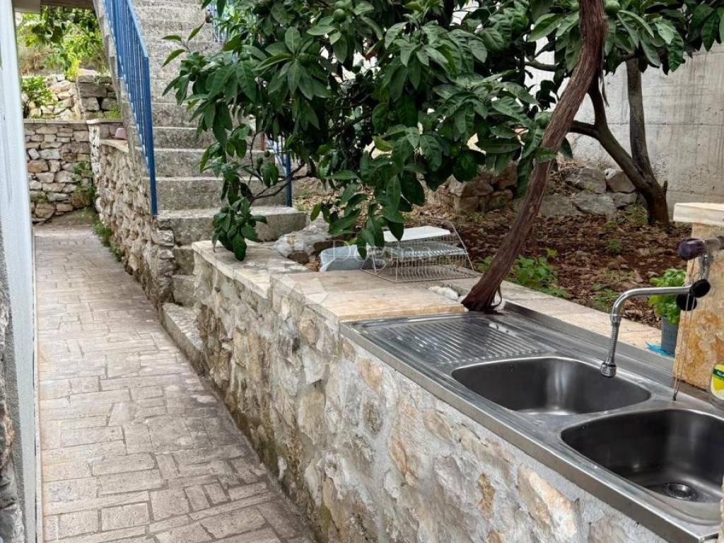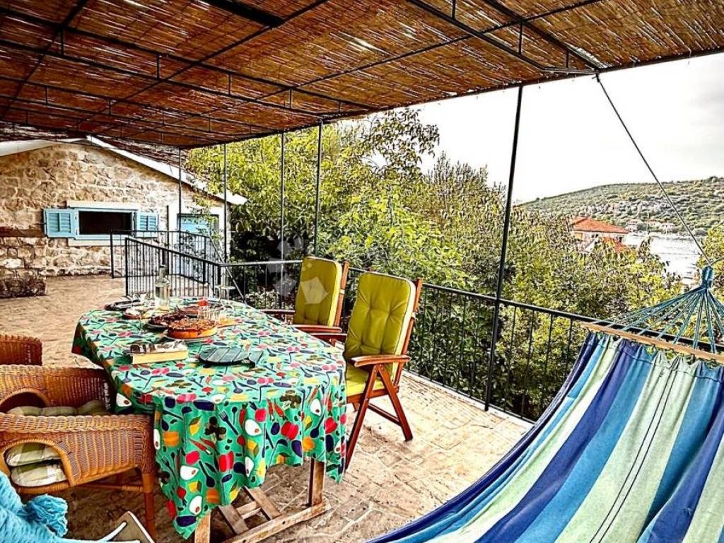 Just a hundred meters from the sea, in the peaceful surroundings of the island Drvenik Veliki, stands this authentic Dalmatian twostorey house with a gustirna, konoba, attic, and a charming separate stone guesthouse with a barbecue an ideal opportunity for those seeking more than mere accommodation: they seek space with character, history, and potential.