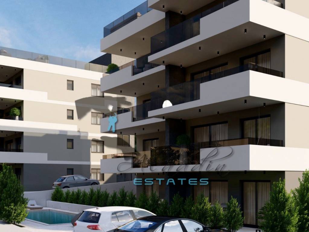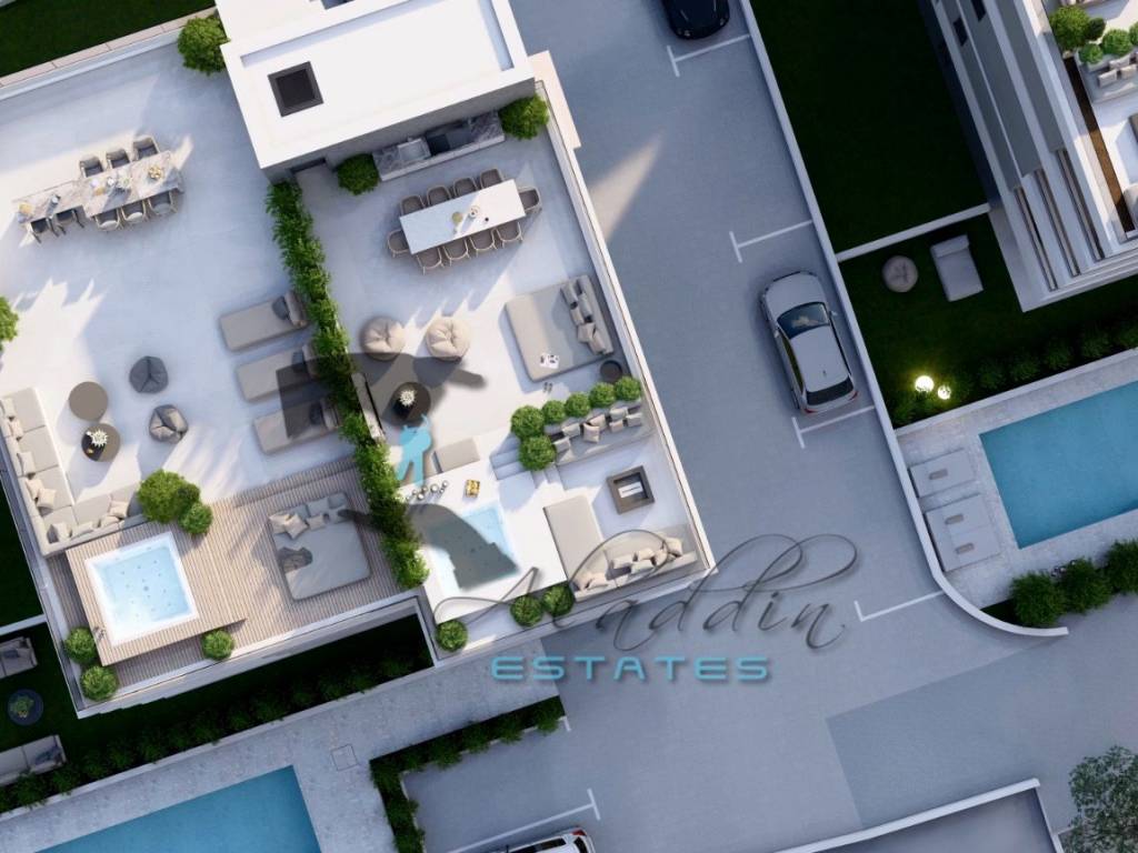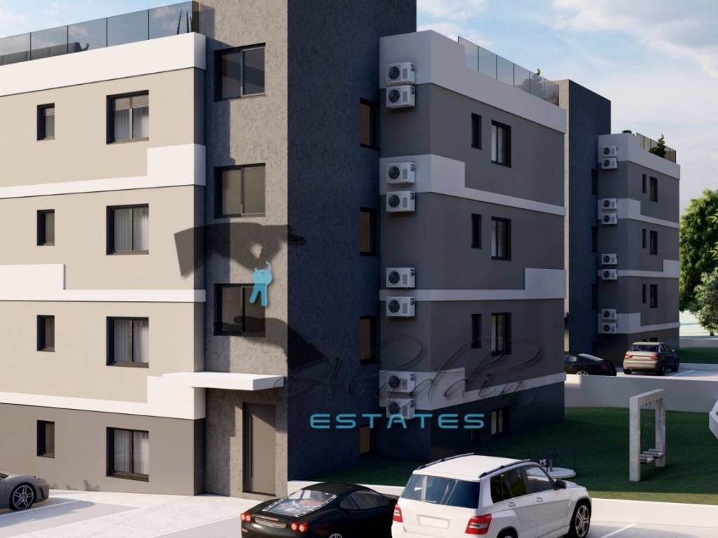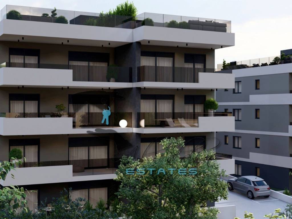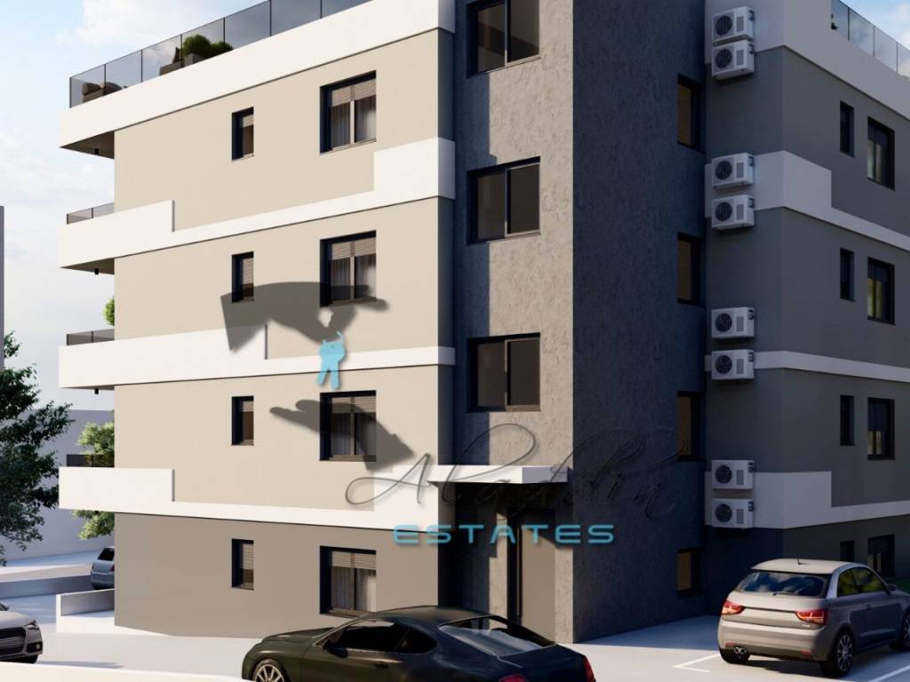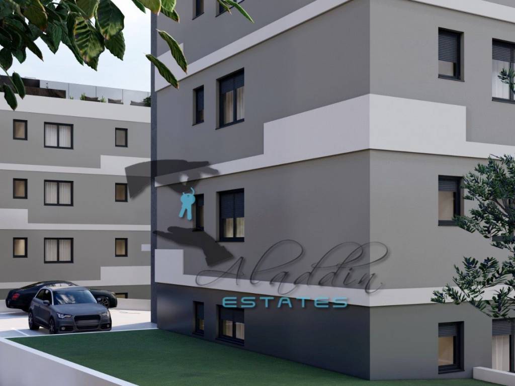 Residential building in a new development in Okrug Gornji with eight apartments, two per floor. Apartment S6 is available on the first floor and consists of a living room and kitchen as one unit, hallway, entrance area, two bedrooms, two bathrooms, and a covered terrace. The apartment also includes one outdoor parking space. The building is serviced by an elevator, and all residents will have access to the pool and sunbathing area within the property. In brief: