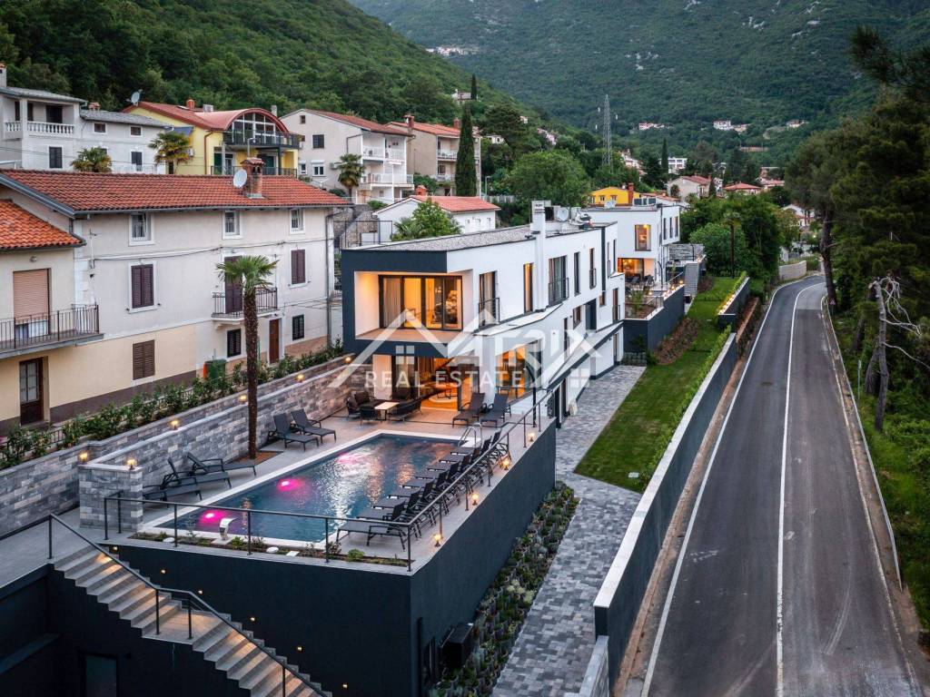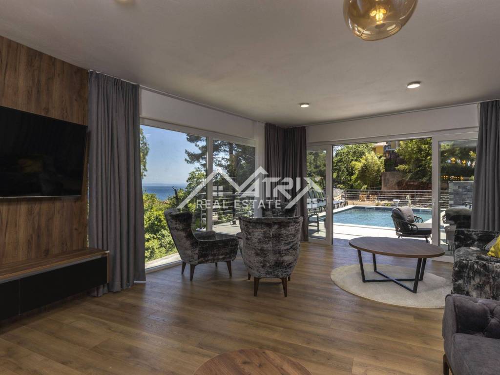 We present to you this luxurious villa with a pool, only 500 m from the sea, located on the outskirts of the Opatija Riviera. Surrounded by greenery and with a spectacular view of the sea and islands, this property will delight you with its exterior and interior.