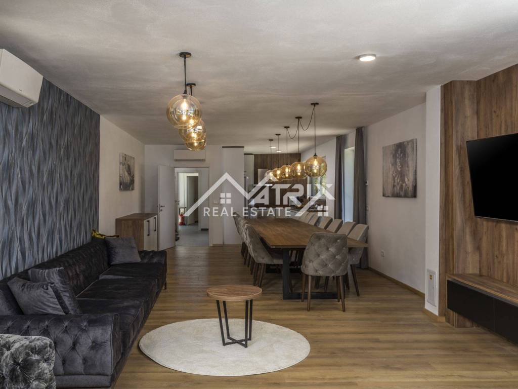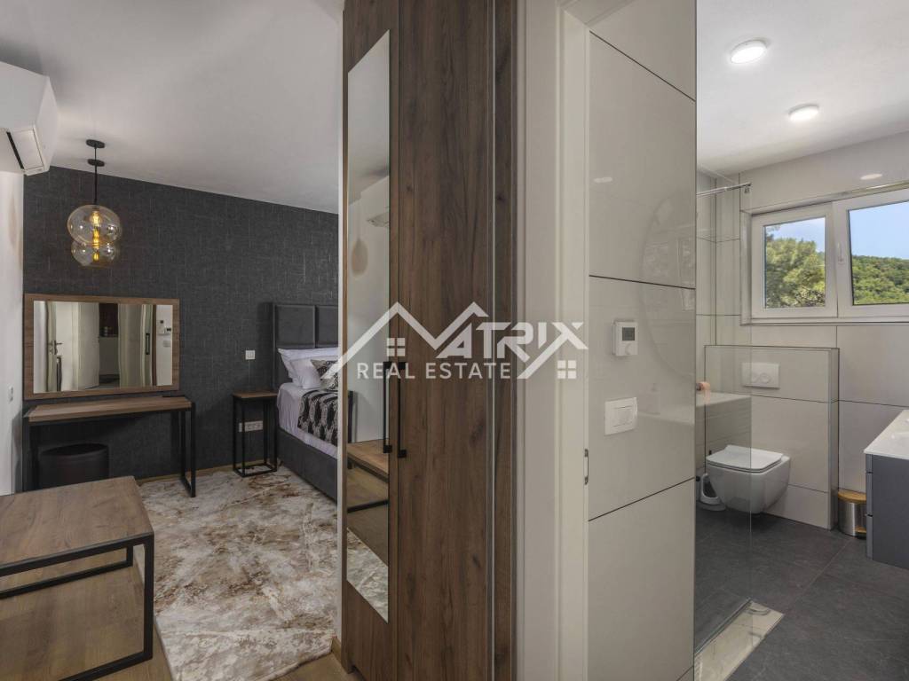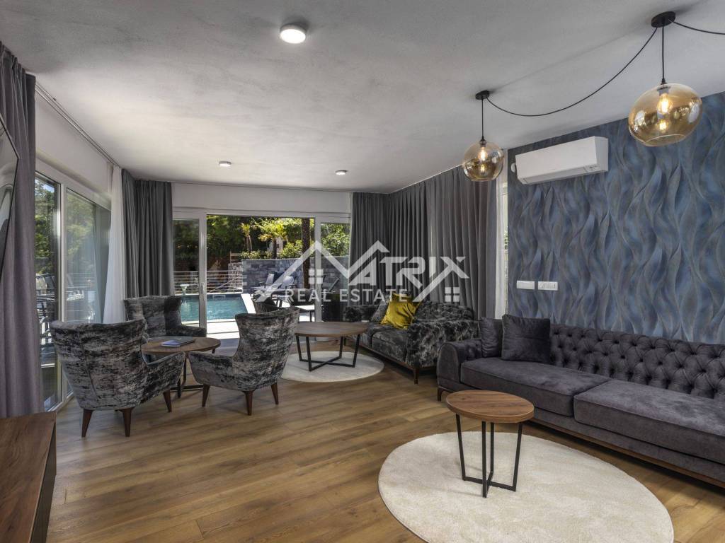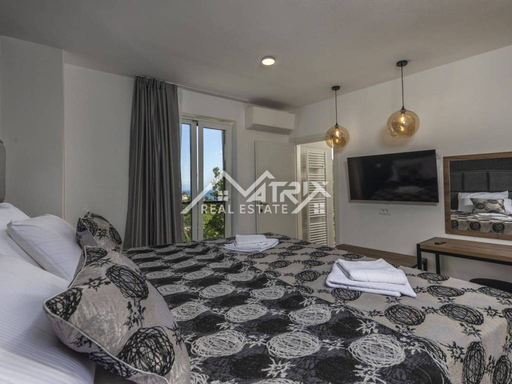One of the special features of this villa is the spectacular view of the sea from all windows and glass walls on the south side of the house. This detail ensures plenty of natural daylight throughout the day. The interior of the villa is equipped with fully designer custom-made furniture, all according to the standard of the 5-star category, providing maximum luxury and a quick return on investment in the case of tourist rental.