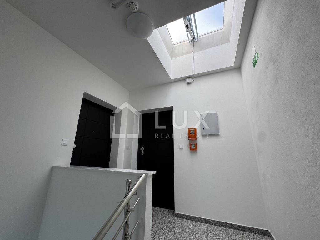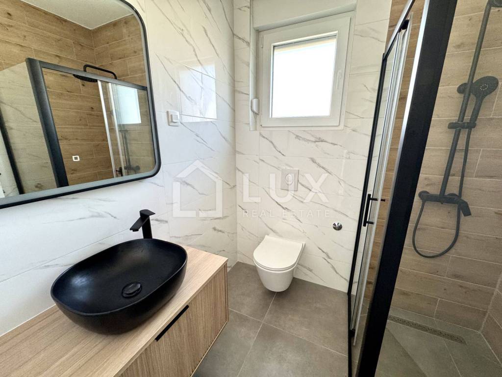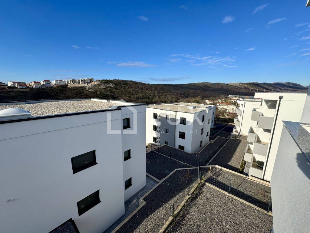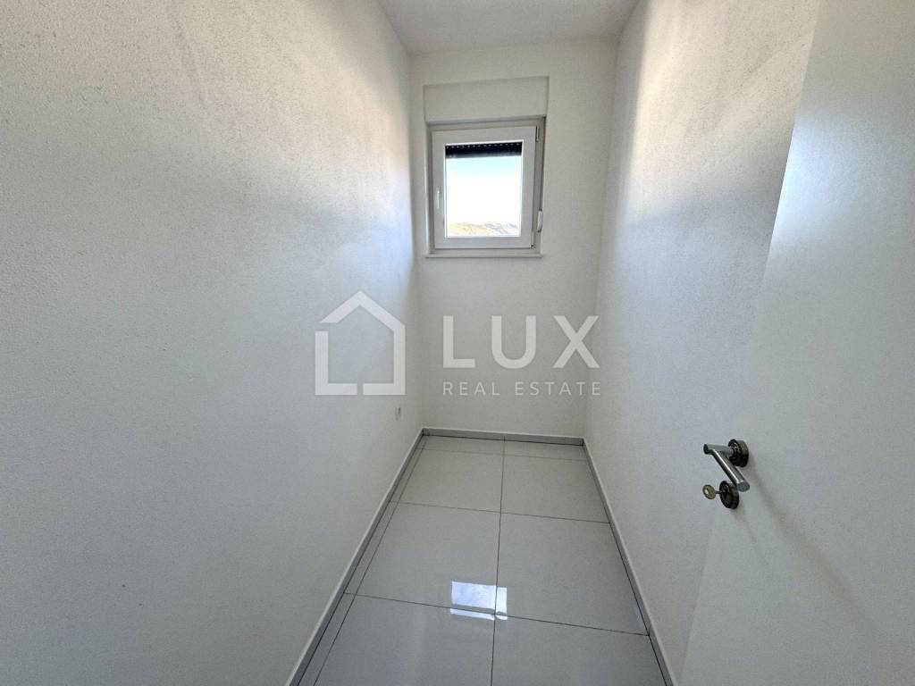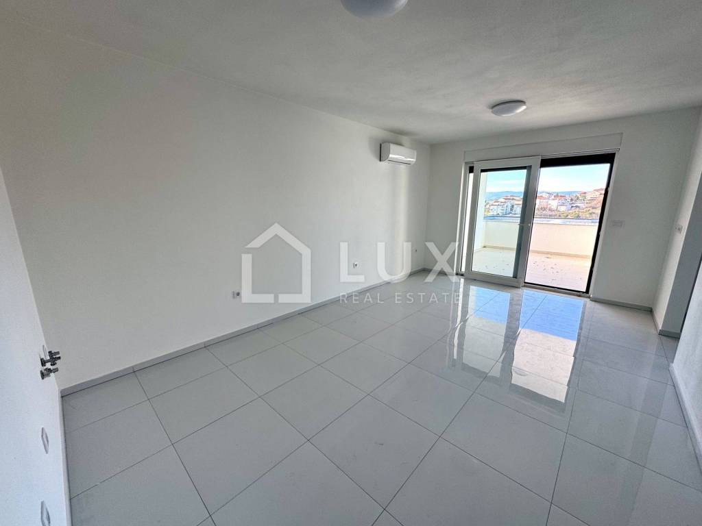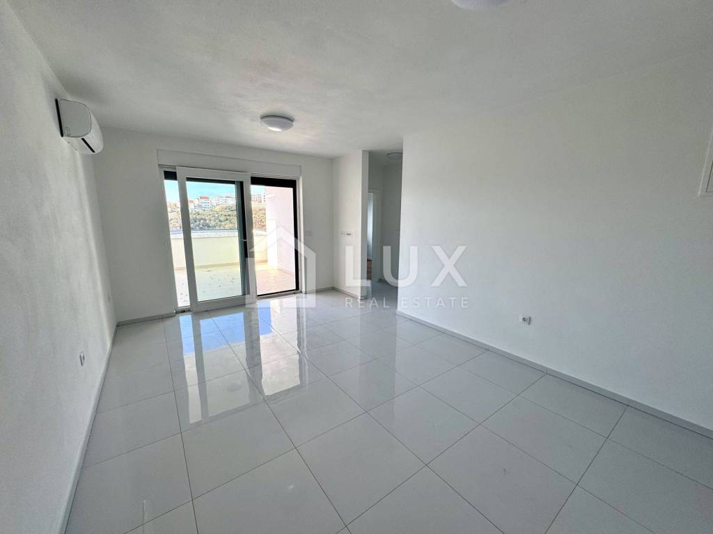 The apartment is located on the 2nd floor of a small residential building and consists of an entrance hall, an open-plan living room with a kitchen and dining room, a bathroom, two bedrooms, a utility room and a spacious loggia with a sea view. The apartment also has one parking space.