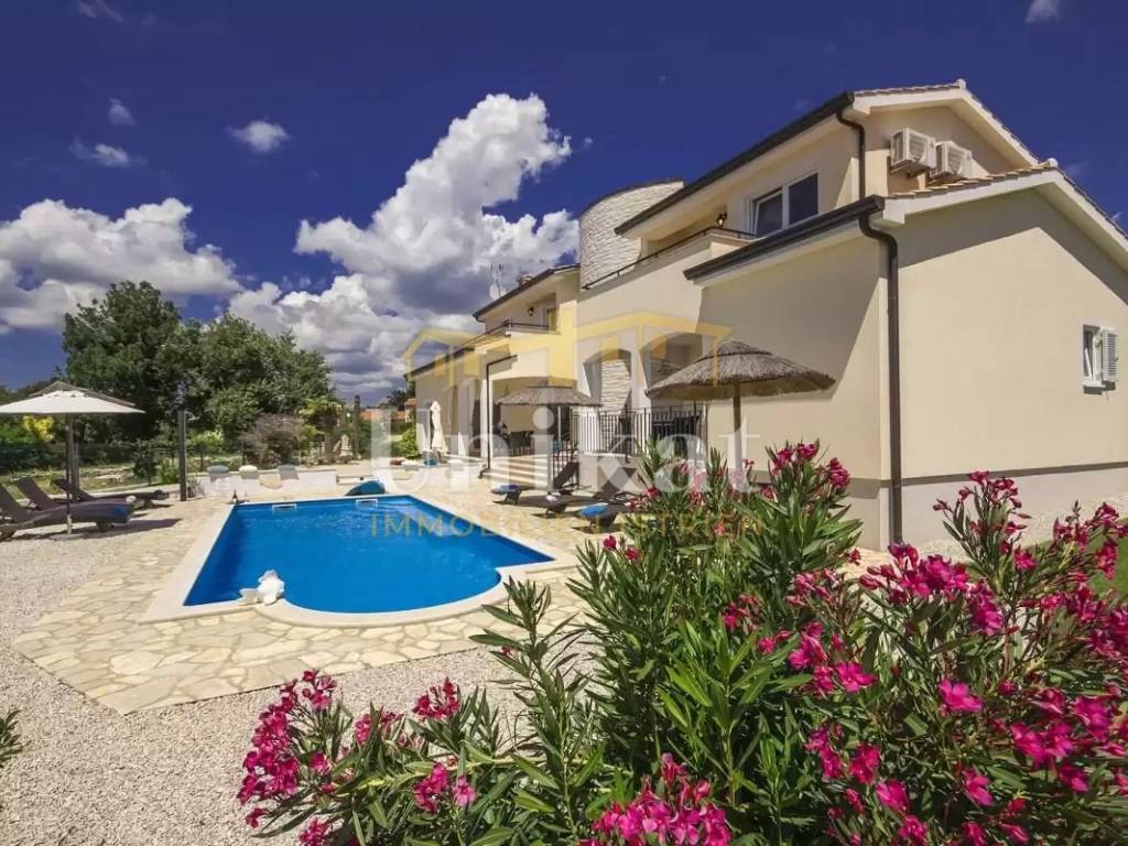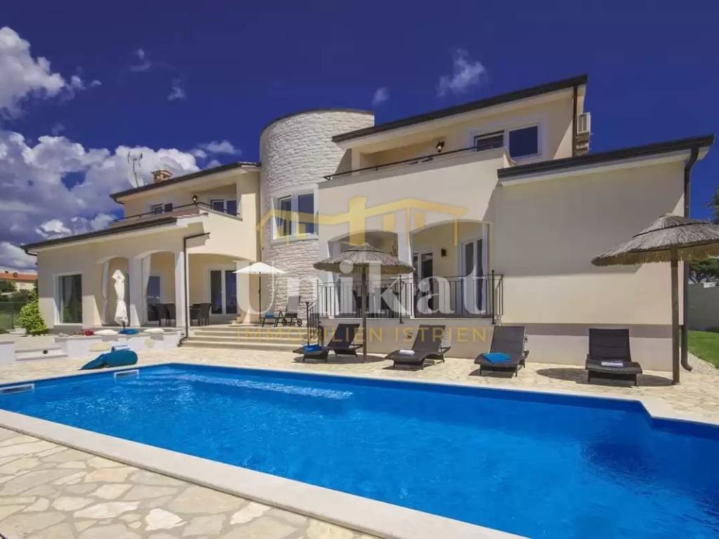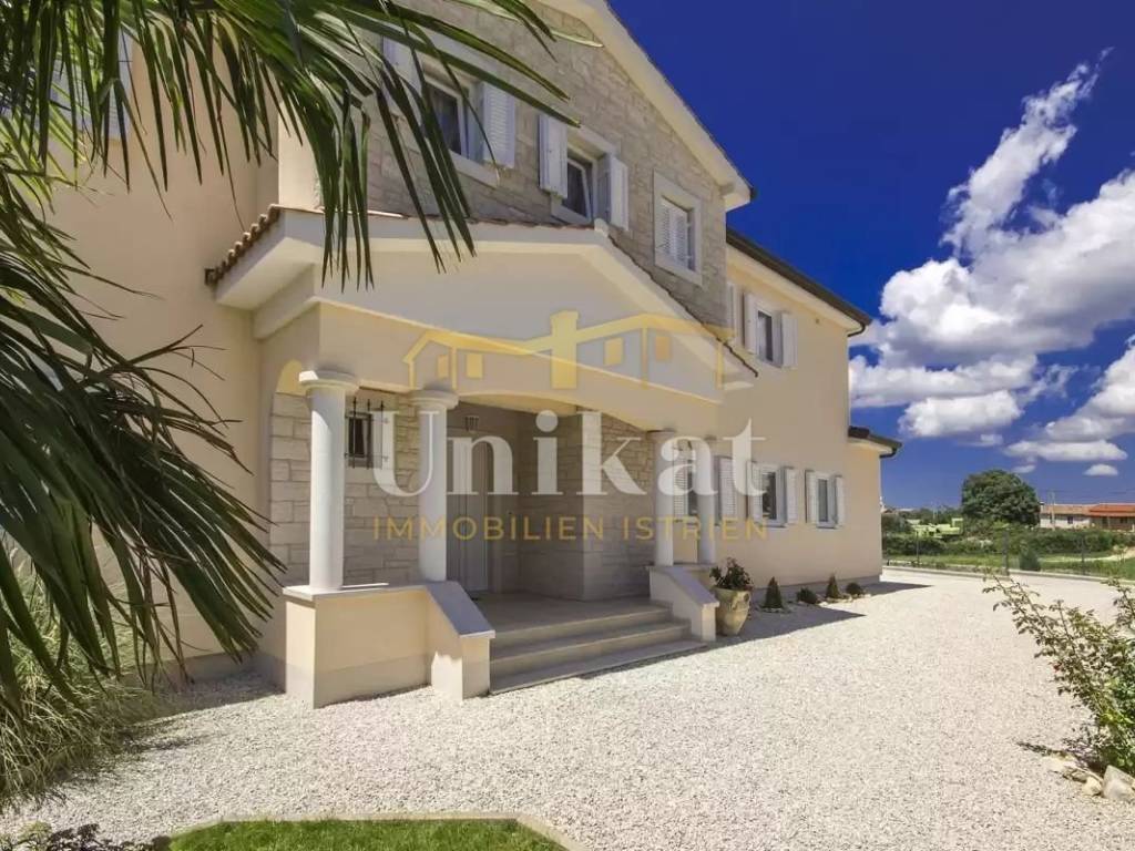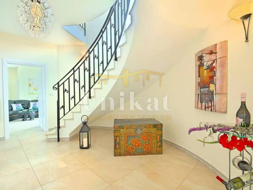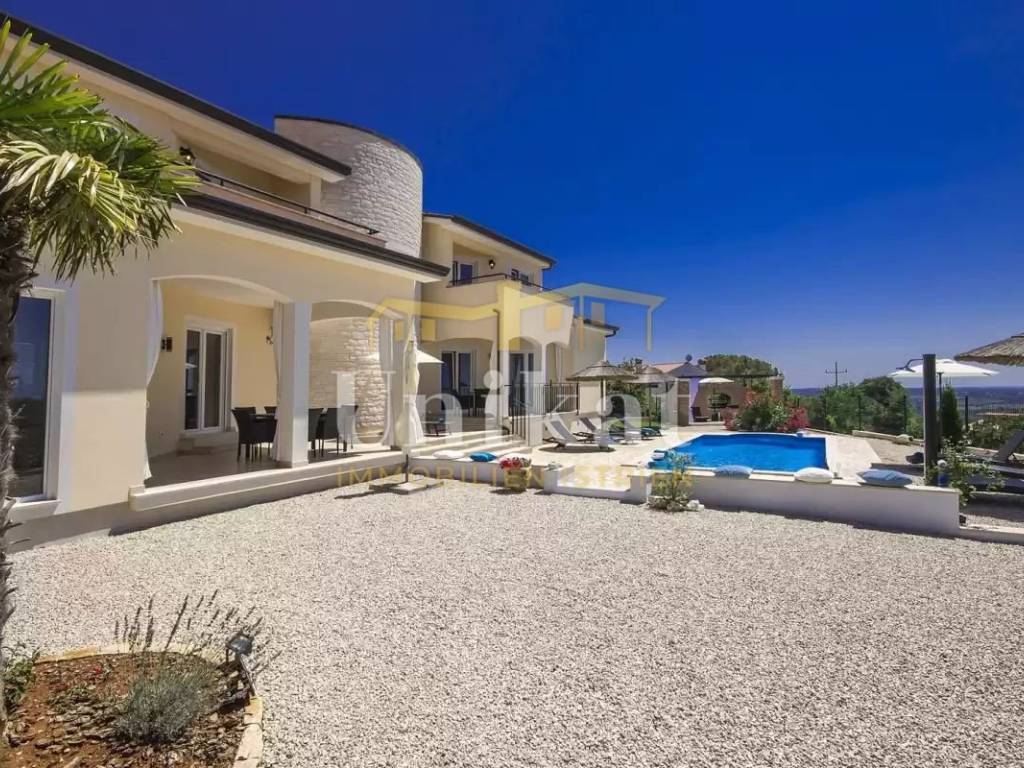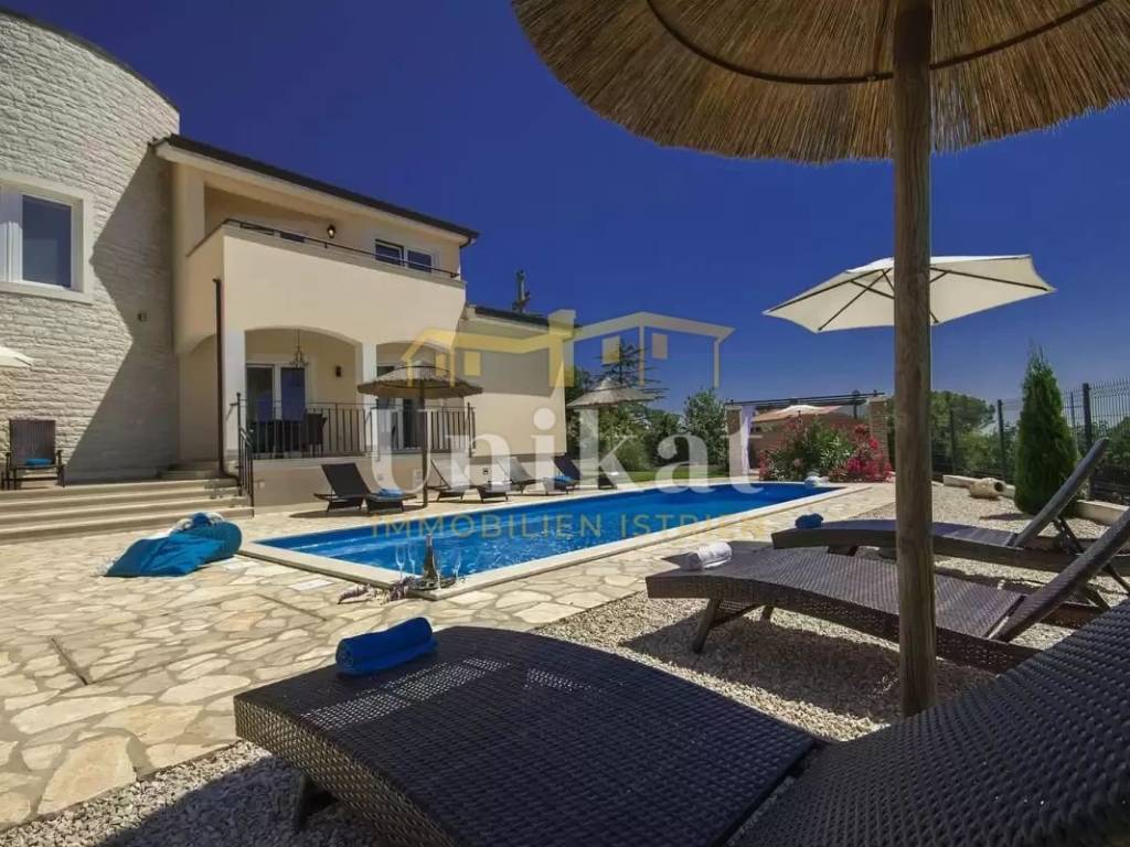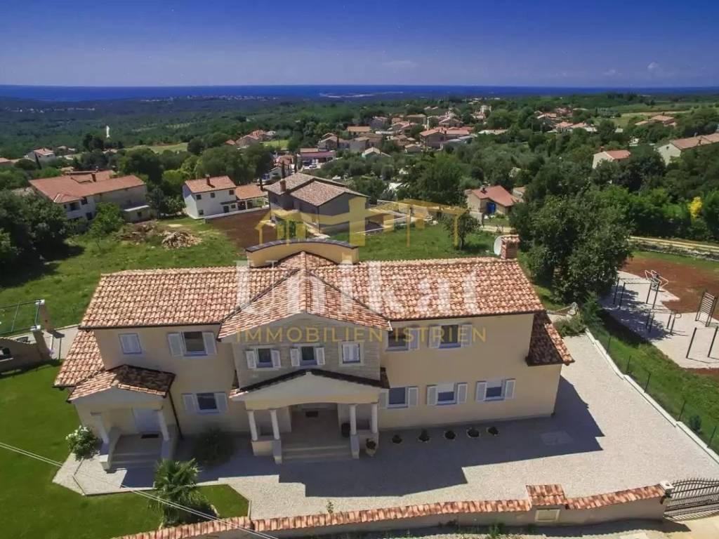 This beautiful villa is located in a place near Poreč, 7 km from the sea and 12 km from the town of Poreč. The location has good infrastructure with markets, restaurants, and all other amenities for everyday life. Since the house is situated on an elevation, it offers a beautiful open panoramic view of the sea, extending to Vrsar, Poreč, and Novigrad, and on clear days the view reaches all the way to Venice.