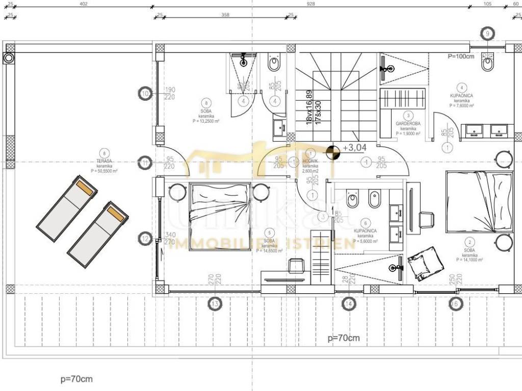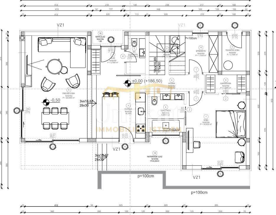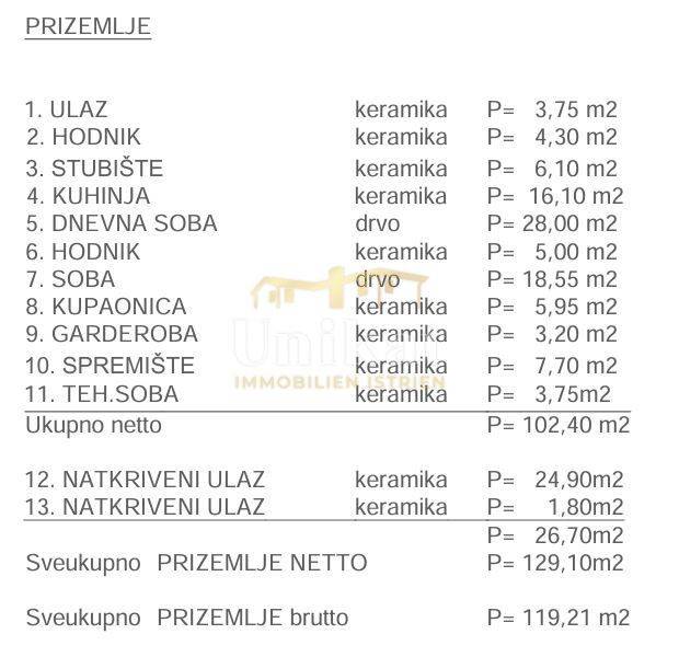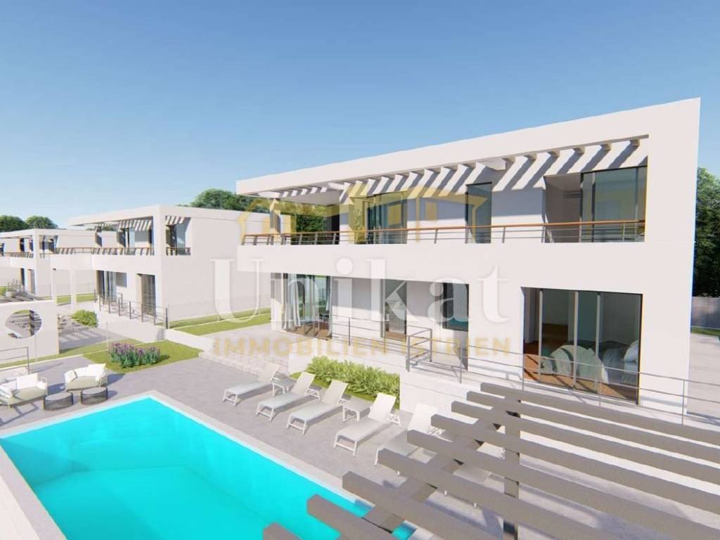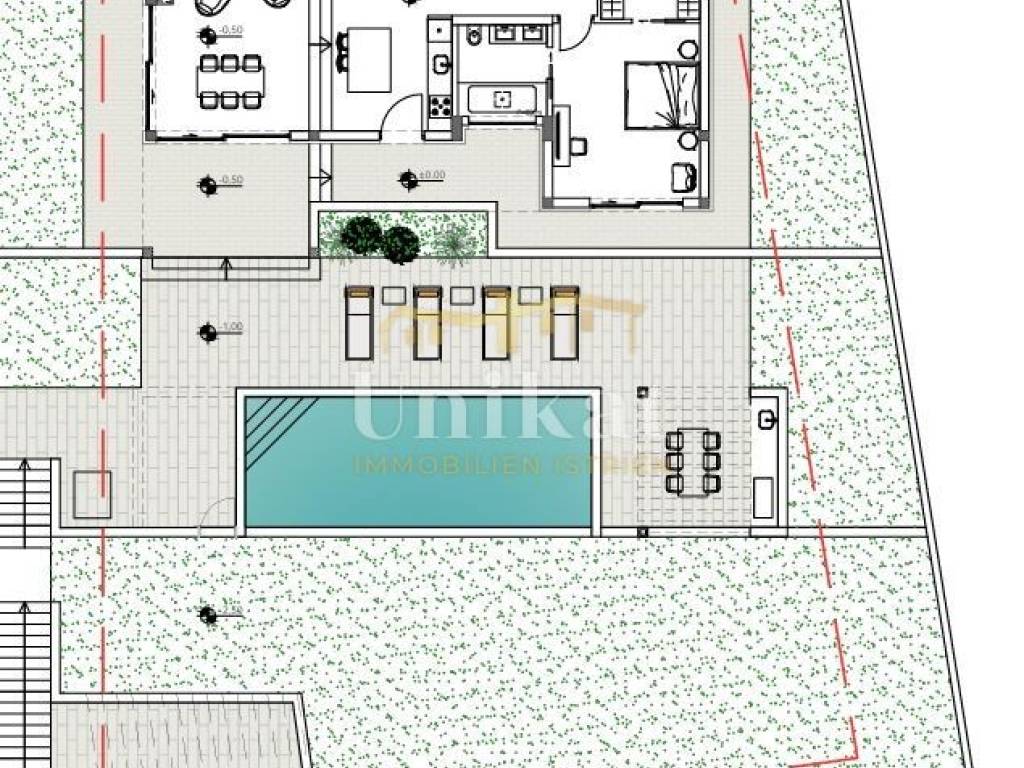 Izrađen je arhitektonski projekt za kuću s bazenom, saunom i tri spavaće sobe. Projekt i građevinska dozvola ulaze u kupoprodajnu cijenu. Građevinska dozvola je izdana, početak gradnje moguć odmah. Predmet kupoprodaje je poduzeće i čijem je vlasništvu zemljište, stoga kupac ne plaća porez na promet nekretnina.
