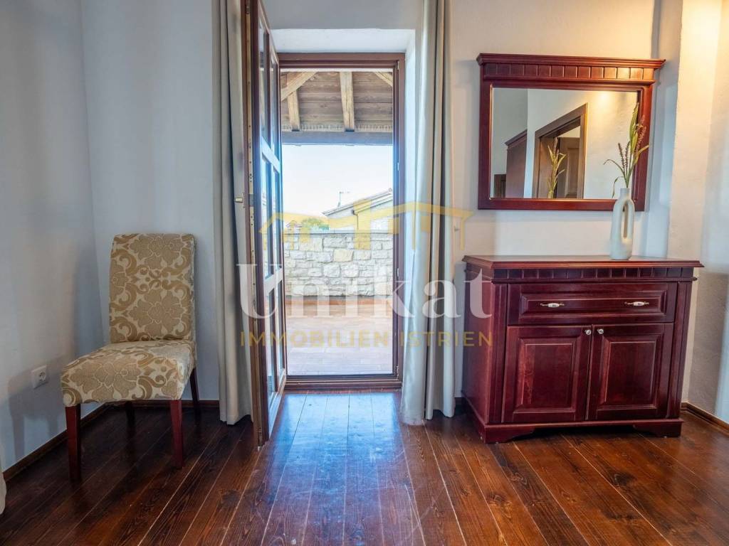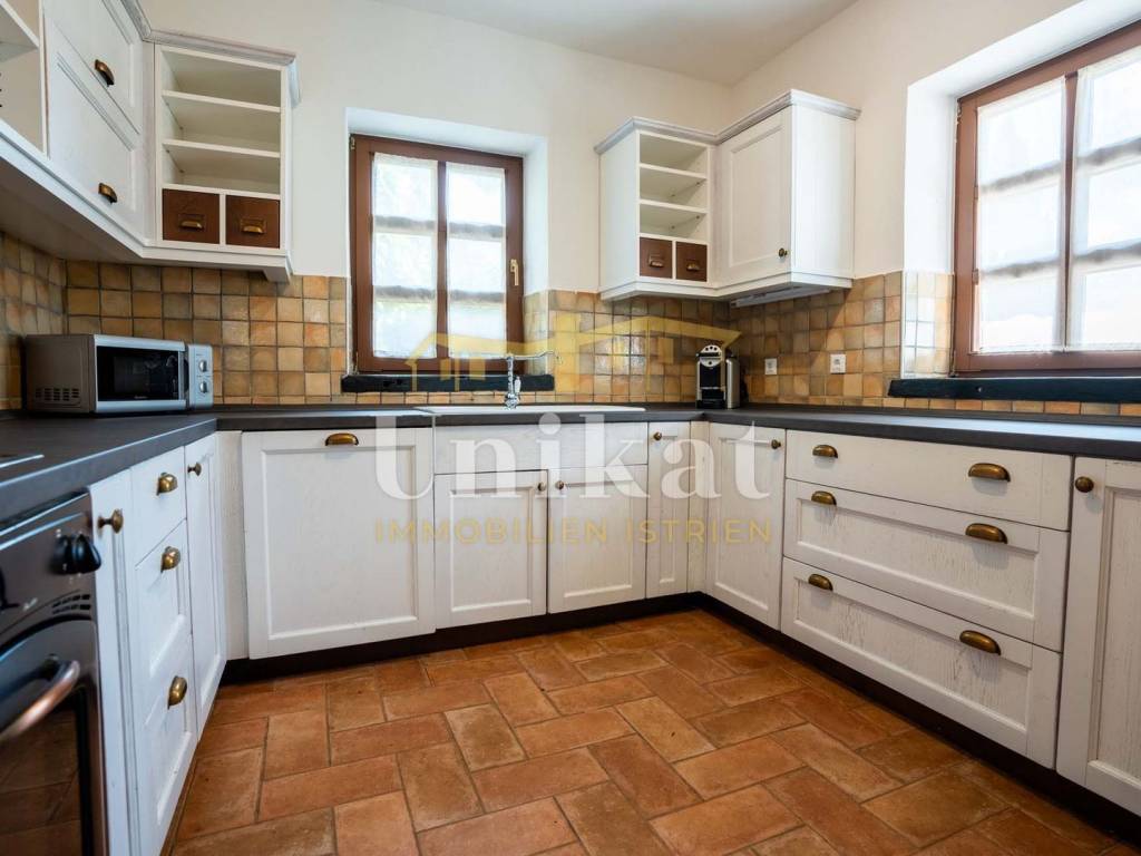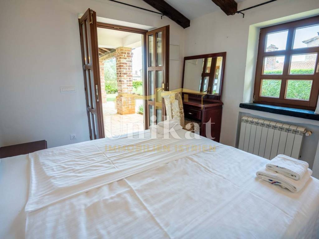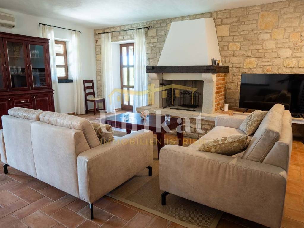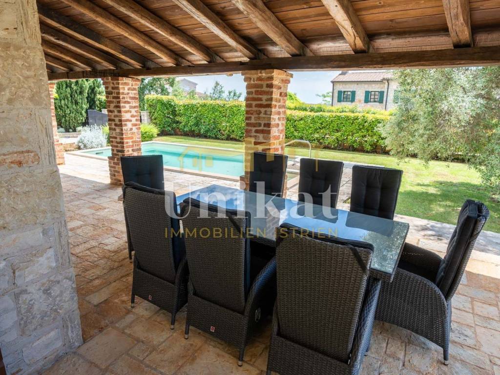 This beautiful villa is located on the edge of an extremely quiet place, 16 km from the sea and Poreč. The neighborhood consists of other holiday homes, and the area is surrounded by nature.