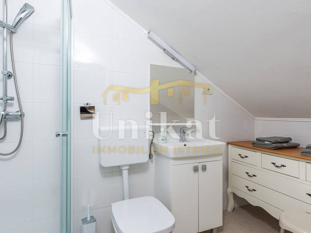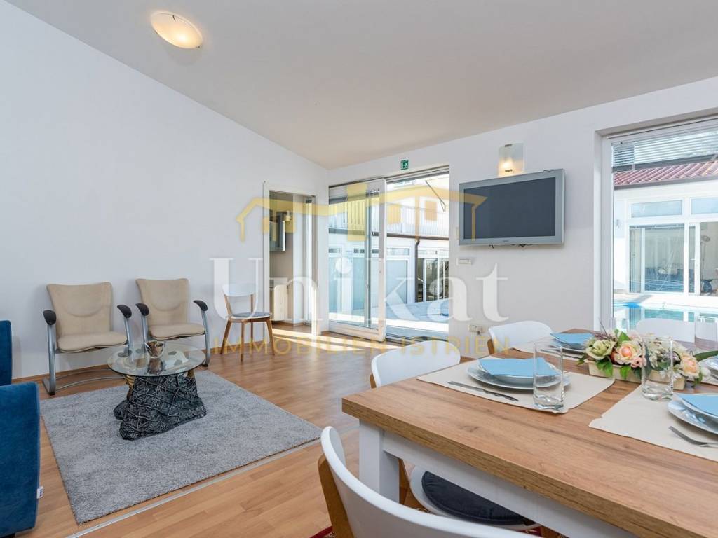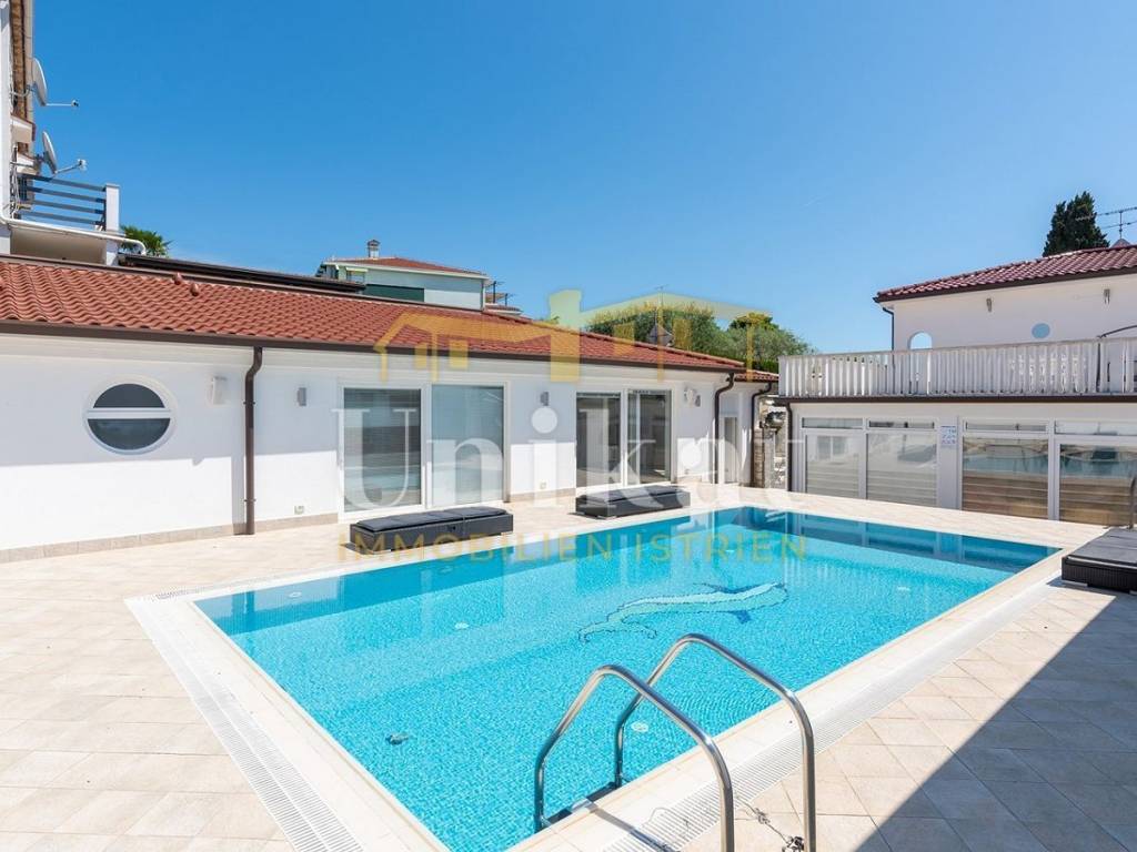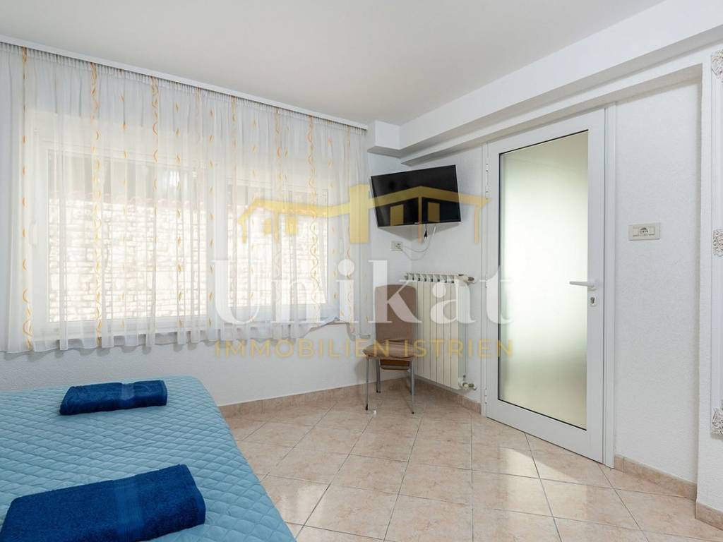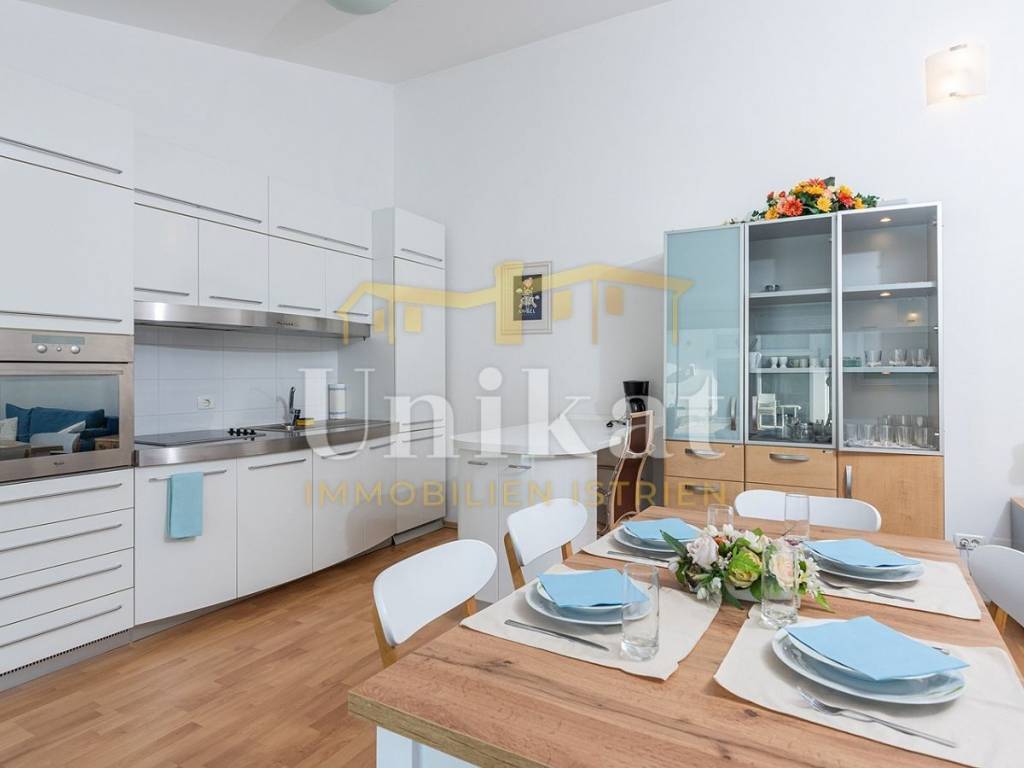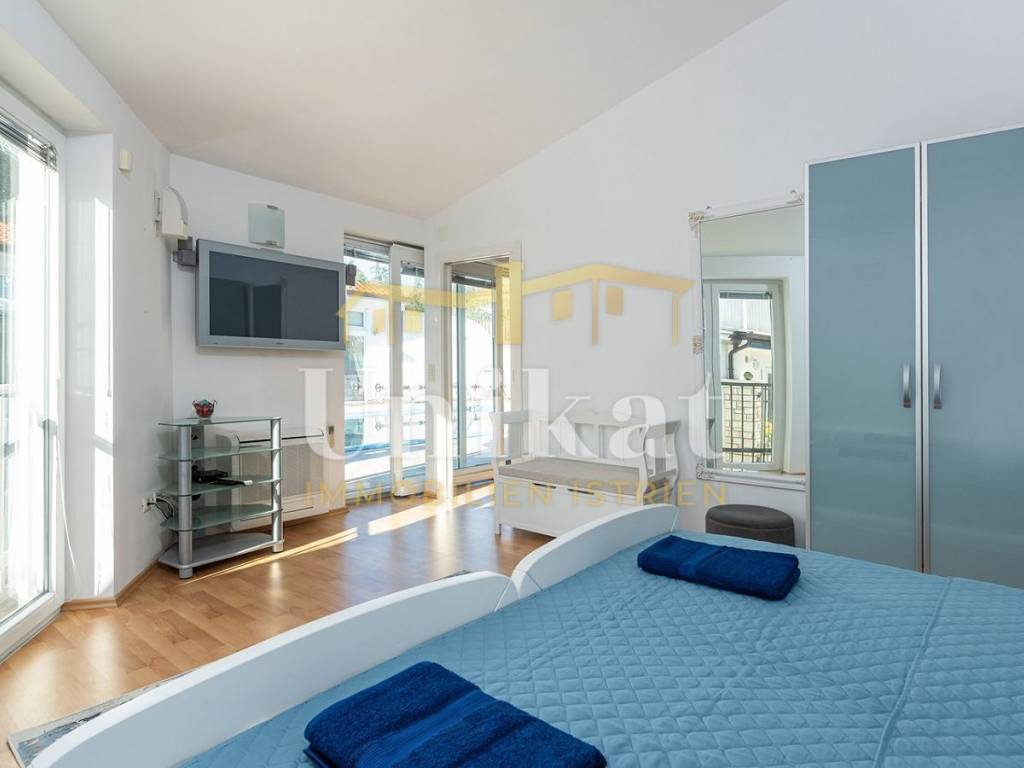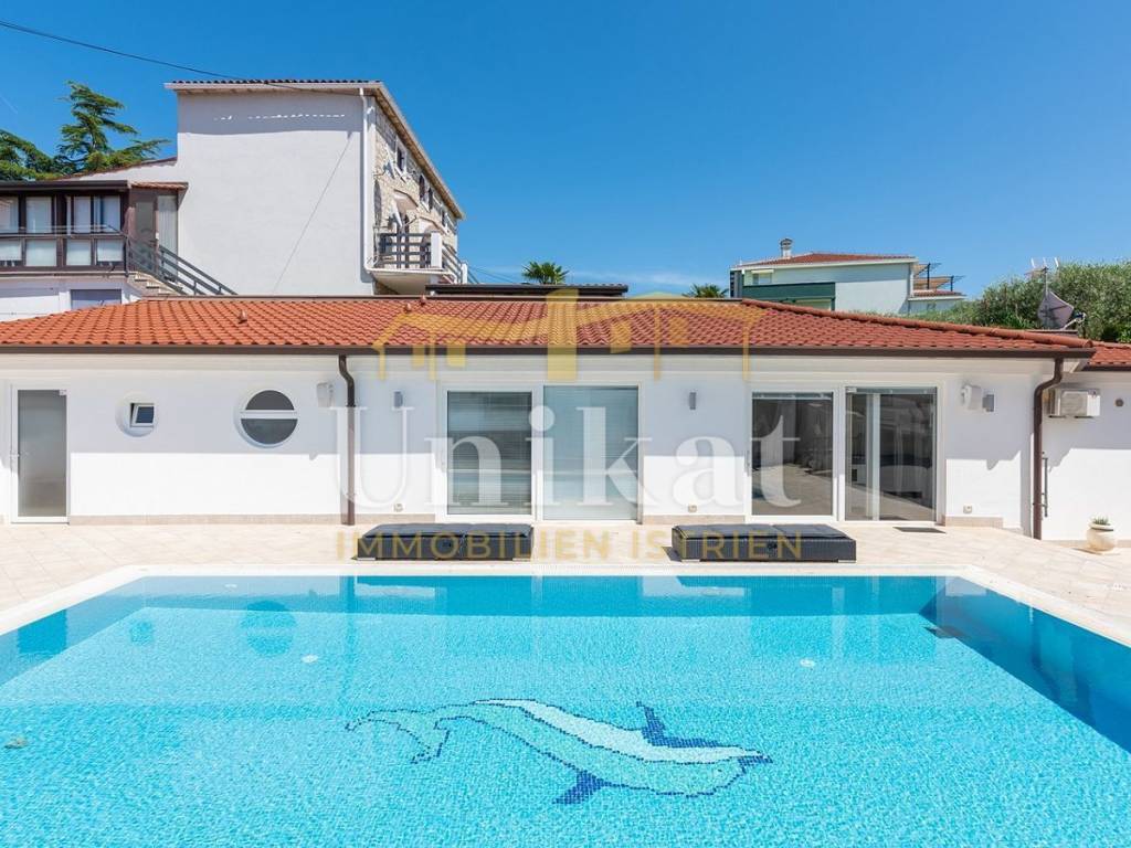 This beautiful house is located in the center of the town of Umag, just 50 meters from the sea. The neighborhood is mixed with residential buildings, holiday homes, and apartments, orderly and quiet.