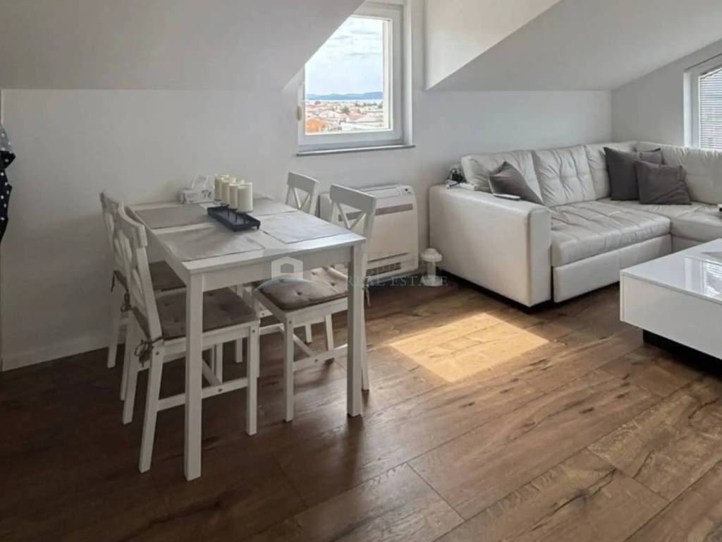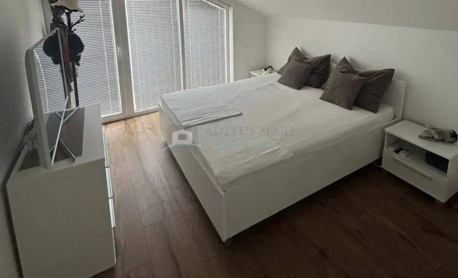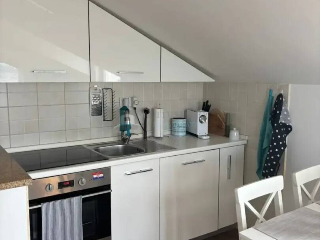 U Vodicama se prodaje moderno uređen i potpuno namješten stan ukupne površine 45,61 m, smješten u visokom potkrovlju stambene zgrade, na mirnoj lokaciji udaljenoj približno 1.000 m od mora i šetnice.