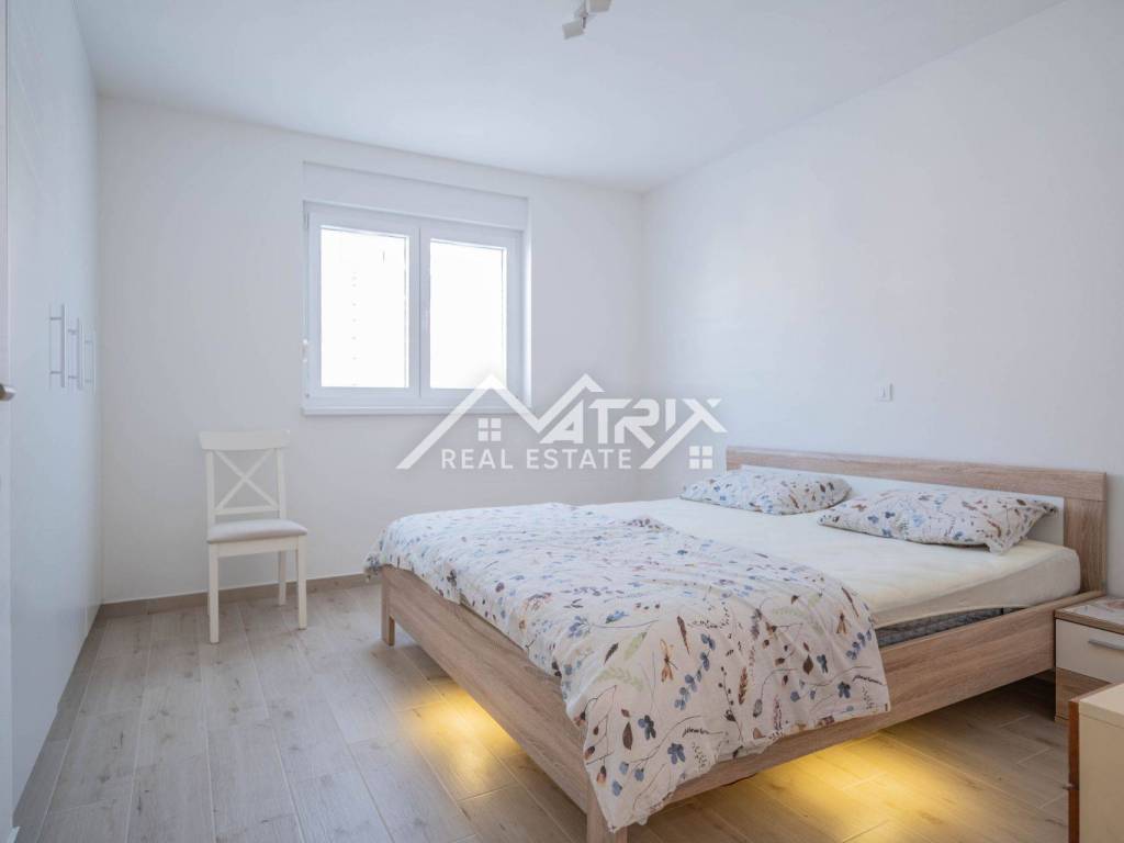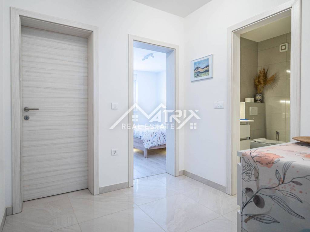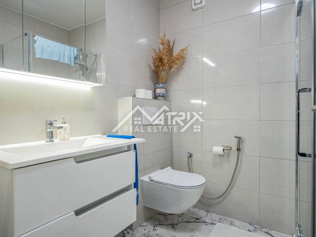Heating is provided by electric underfloor heating in all rooms except the bedrooms, and an air-conditioning unit is installed for both heating and cooling. The bathroom and sanitaryware were renovated in 2025. The apartment is very sunny and set in a quiet area, while amenities such as restaurants, shops, kindergarten and school are nearby. Documentation is in order; the building has an occupancy permit and an A energy certificate, making mortgage purchase possible.