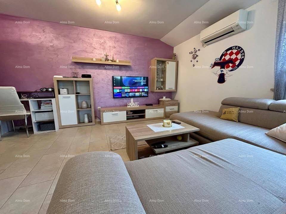 For sale is a beautiful, well-maintained apartment in a quiet area of Novigrad, just 2 km from the beach and the city center. The apartment is located in a smaller building and consists of:- two bedrooms- a living room with a kitchen and dining area- a bathroom.The apartment is sold fully furnished, ready for immediate occupancy without any additional investment.Additional advantages:There is a possibility to create an extra room (bedroom or studio) thanks to the lowered ceiling.The land around the building is owned by the building, which adds extra value and security.A peaceful location, suitable for permanent residence or tourist rental.For more information and to schedule a viewing, please contact:Azra +385 91 611 5706 +385 98 420 885 azra@almadominvest.com