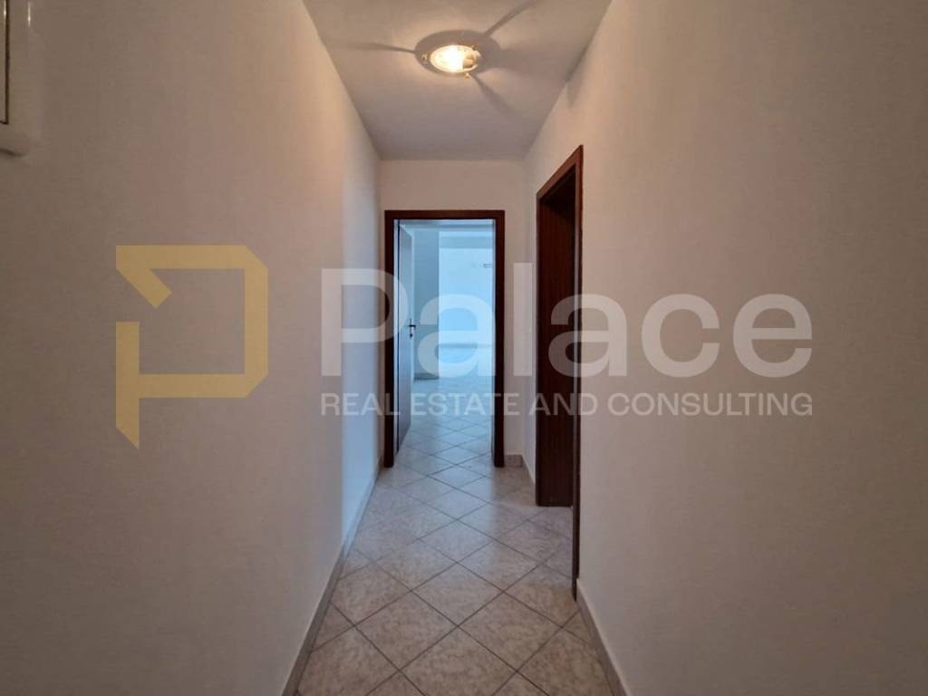 The total area of the apartment is 78.7 m² and consists of a hallway, bathroom, toilet, three bedrooms, living room, kitchen with dining area, storage room, and terrace. In essence, it is divided into two separate one-bedroom residential units, each with its own living room, kitchen, and bathroom. One unit has a French balcony with partial sea view, while the other has a terrace, also with partial sea view.