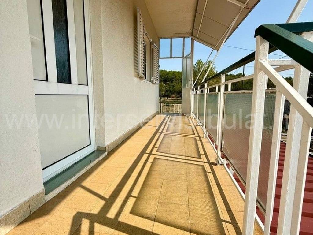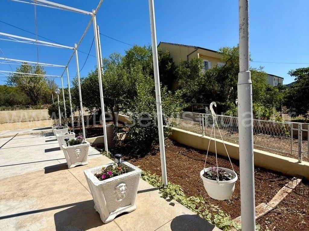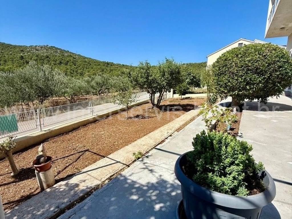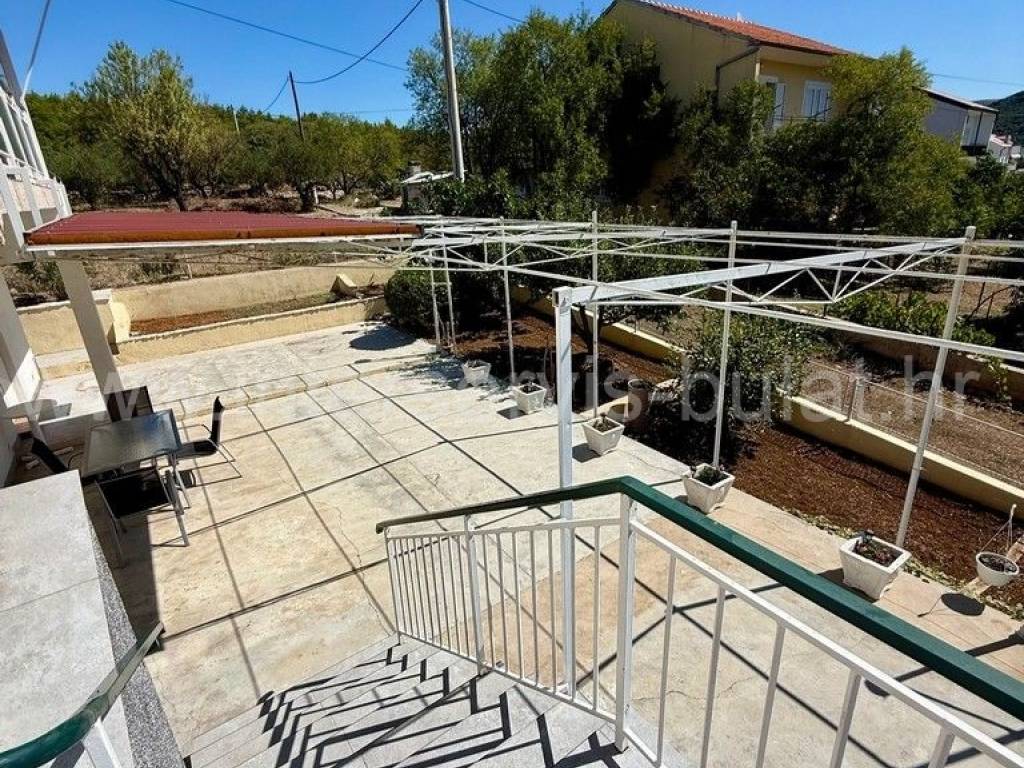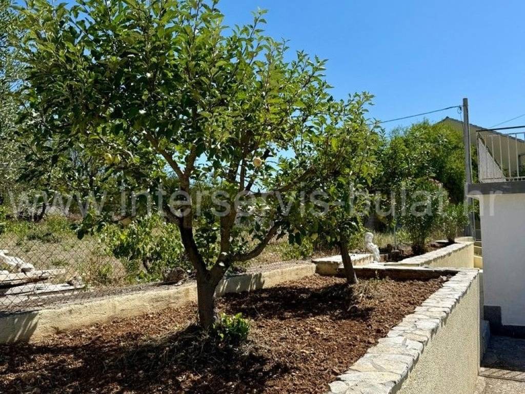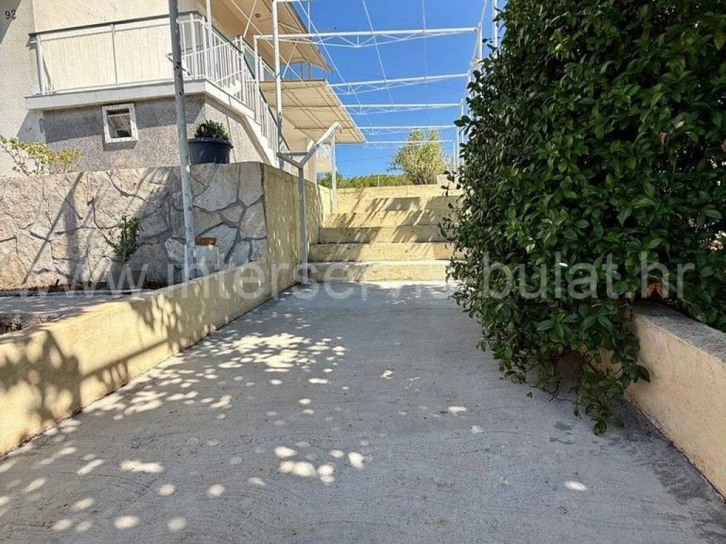 .::: Bilice, house with two apartments on a large plot :::. The detached family house with two apartments is located in Bilice close to Šibenik, offers 162sqm of living area and is situated on a spacious plot of 879sqm. The ground floor of the house contains a 17sqm garage, a habitable 2-bedroom apartment, a central heating room and two storage rooms. In front of the apartment is a comfortable 40sqm terrace. An external staircase leads to the upper floor where there is a further two-bedroom apartment with a balcony and a terrace. In the yard there is an outbuilding of 26sqm that offers additional storage space and a barbecue. The yard also offers plenty of space for parking, landscaping or building a swimming pool. Tour of the property is available by prior arrangement and appointment booking (two days in advance). Please specify ID number of the property when contacting us. Looking forward to your call.