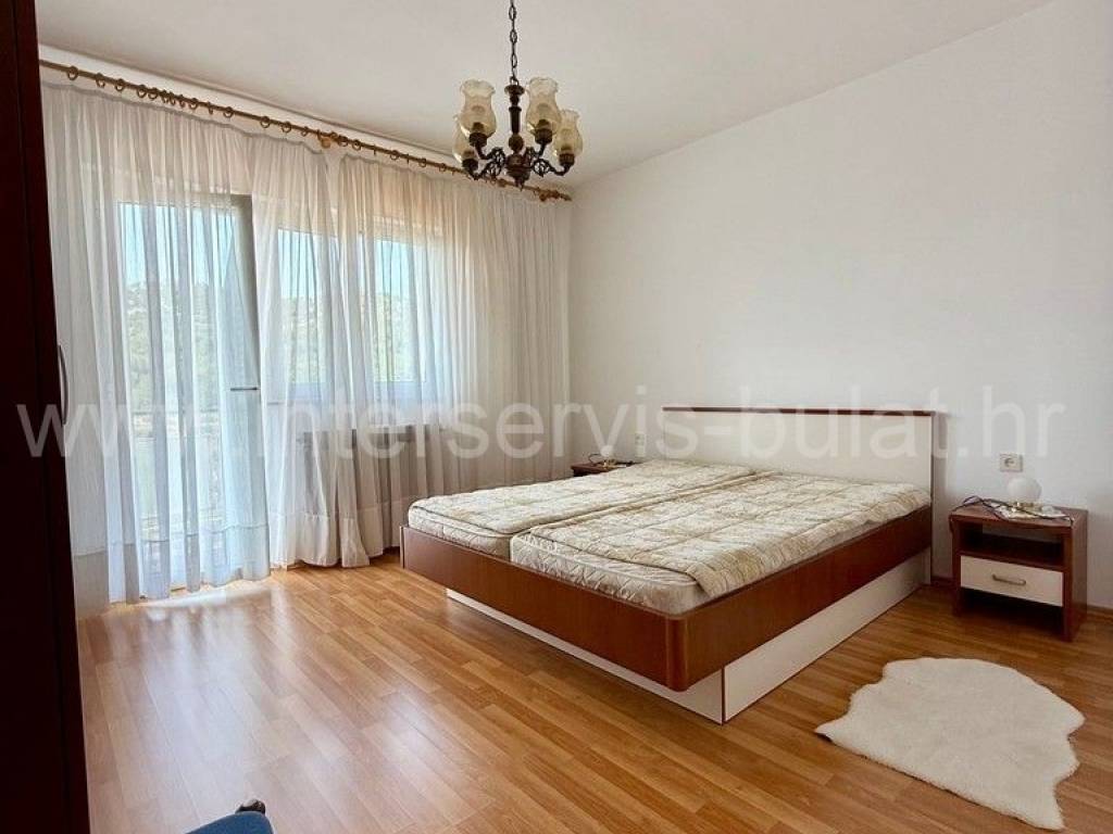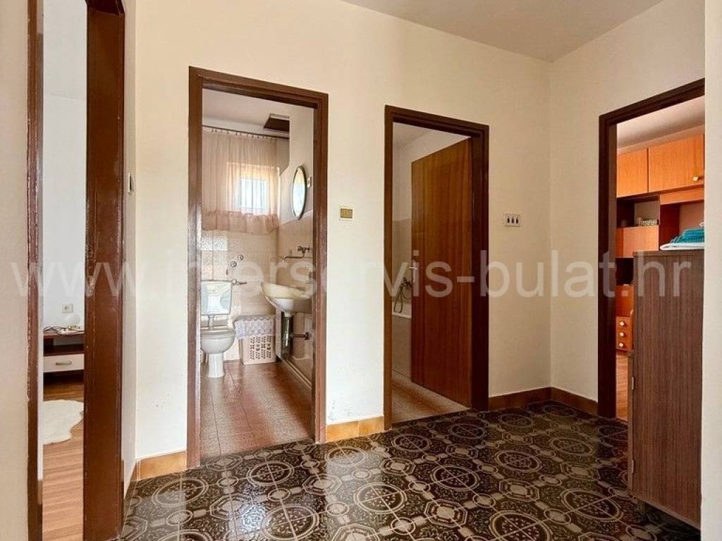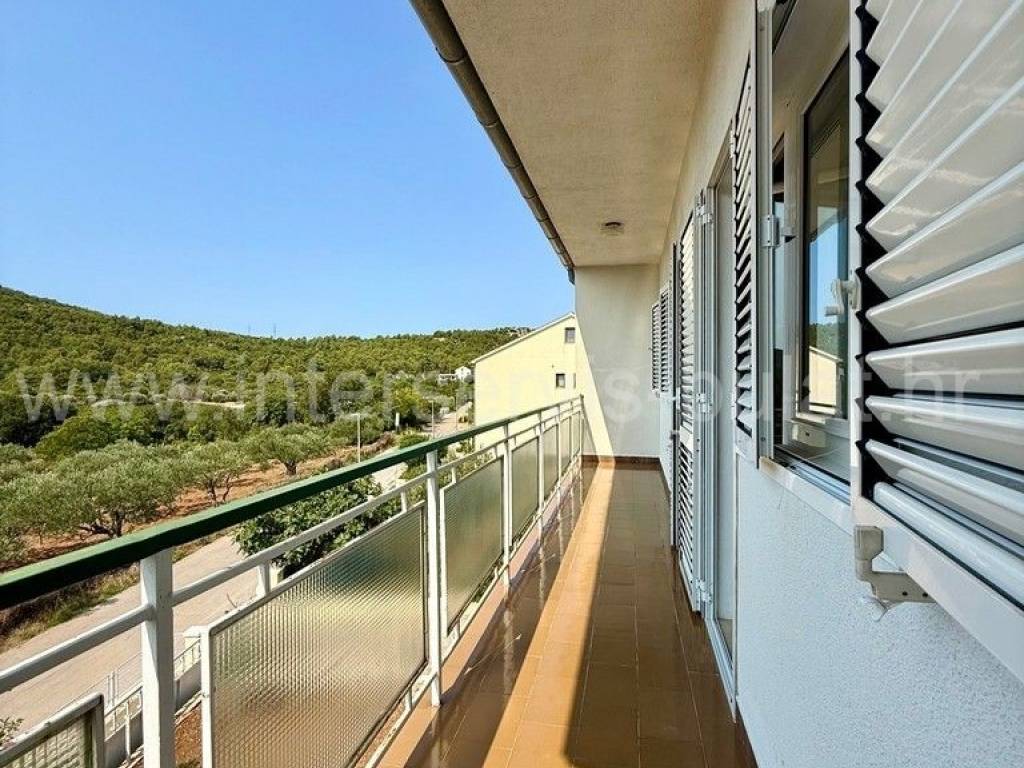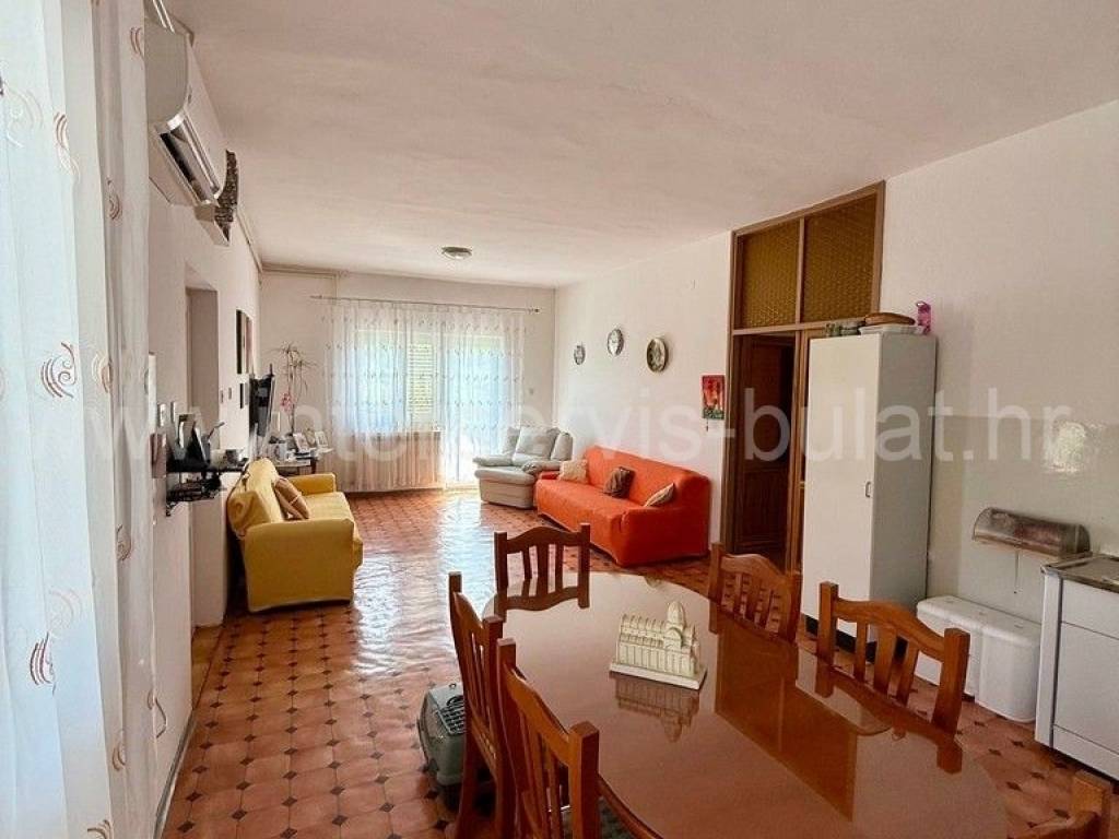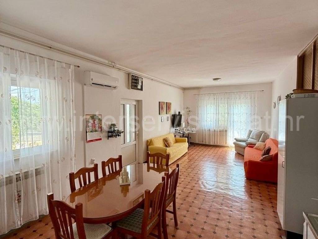 .::: Bilice, house with two apartments on a large plot :::. The detached family house with two apartments is located in Bilice close to Šibenik, offers 162sqm of living area and is situated on a spacious plot of 879sqm. The ground floor of the house contains a 17sqm garage, a habitable 2-bedroom apartment, a central heating room and two storage rooms. In front of the apartment is a comfortable 40sqm terrace. An external staircase leads to the upper floor where there is a further two-bedroom apartment with a balcony and a terrace. In the yard there is an outbuilding of 26sqm that offers additional storage space and a barbecue. The yard also offers plenty of space for parking, landscaping or building a swimming pool. Tour of the property is available by prior arrangement and appointment booking (two days in advance). Please specify ID number of the property when contacting us. Looking forward to your call.