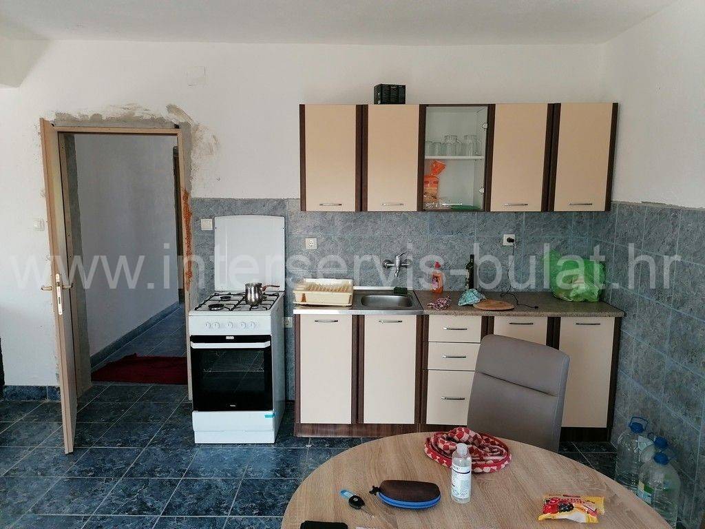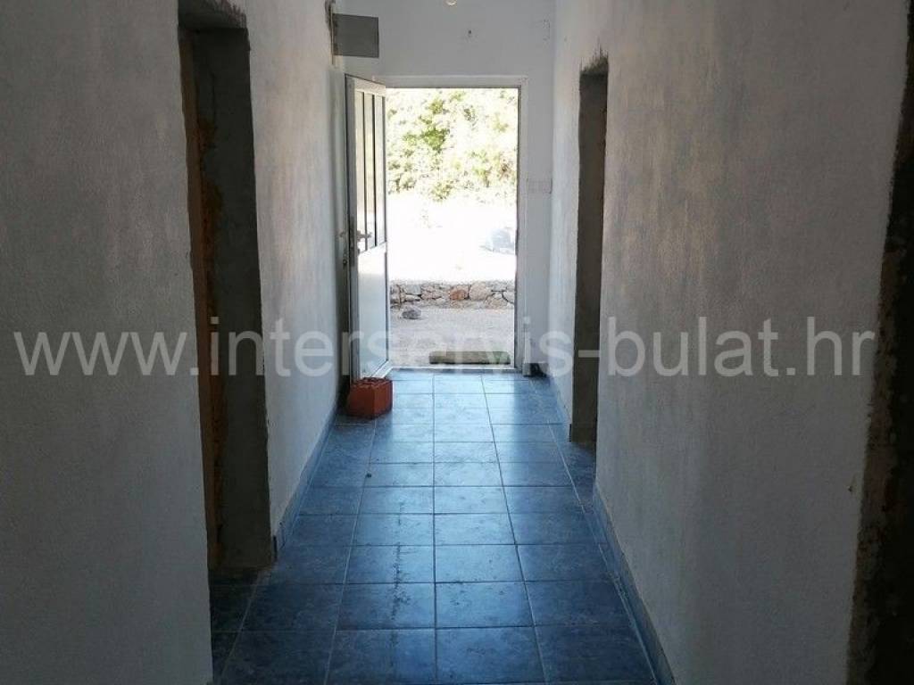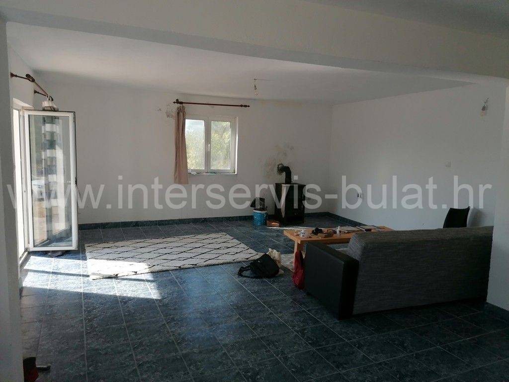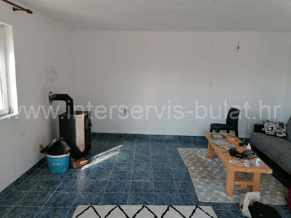 .::: Ground floor house with 100sqm in Žagrović :::. In Žagrović, not far from Knin, there is a detached house with a living area of 100sqm. In the house we find a hallway, bathroom, two bedrooms and an open kitchen with living room. From the living room there is an exit to the terrace of 25sqm below which there is a cistern in which there is rainwater used for the bathroom. Two solar panels (approximately 2 kW) are in charge of the lights in the house, while a power generator is currently used for larger consumers. Neighboring housesare only 30 meters away so electricity and water connections are in immediate vicinity. The house has a building permit for ground floor and first floor, it is located in a quiet and secluded location with a beautiful view of the mountains in the distance. Tour of the property is available by prior arrangement and appointment booking (two days in advance). Please specify ID number of the property when contacting us. Looking forward to your call.