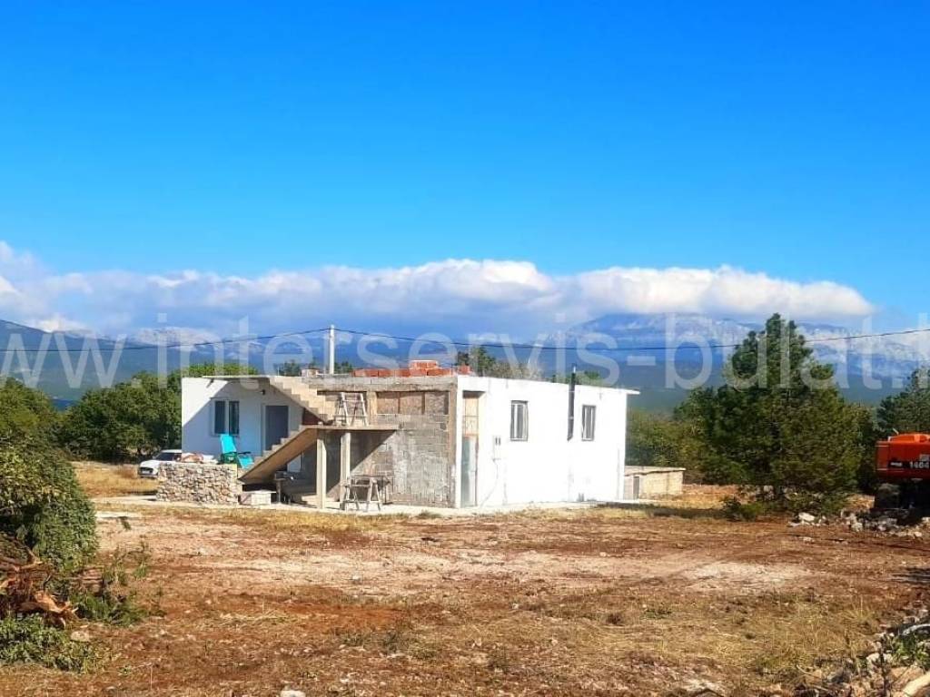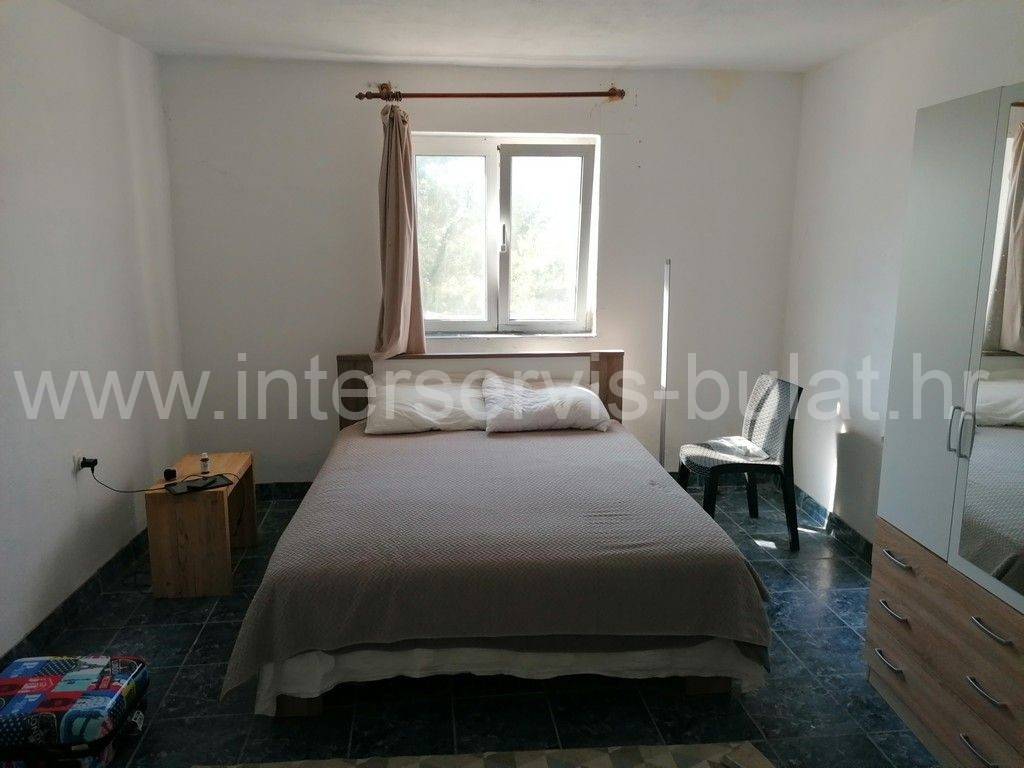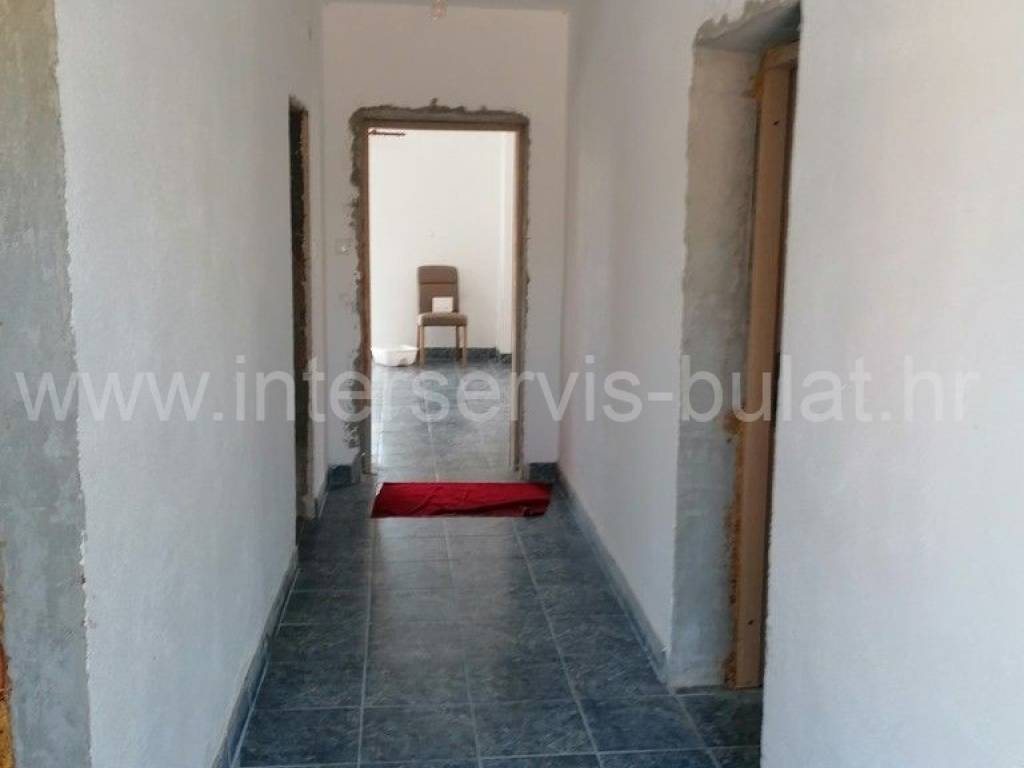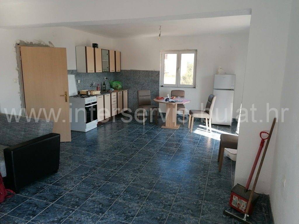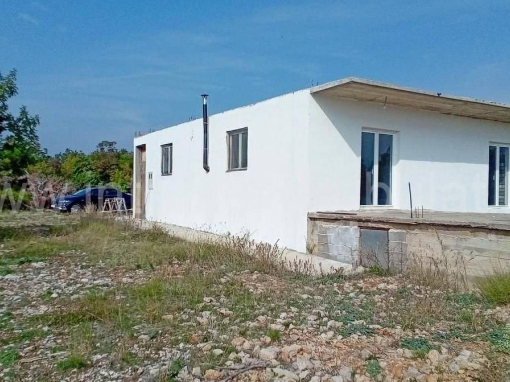 .::: Ground floor house with 100sqm in Žagrović :::. In Žagrović, not far from Knin, there is a detached house with a living area of 100sqm. In the house we find a hallway, bathroom, two bedrooms and an open kitchen with living room. From the living room there is an exit to the terrace of 25sqm below which there is a cistern in which there is rainwater used for the bathroom. Two solar panels (approximately 2 kW) are in charge of the lights in the house, while a power generator is currently used for larger consumers. Neighboring housesare only 30 meters away so electricity and water connections are in immediate vicinity. The house has a building permit for ground floor and first floor, it is located in a quiet and secluded location with a beautiful view of the mountains in the distance. Tour of the property is available by prior arrangement and appointment booking (two days in advance). Please specify ID number of the property when contacting us. Looking forward to your call.