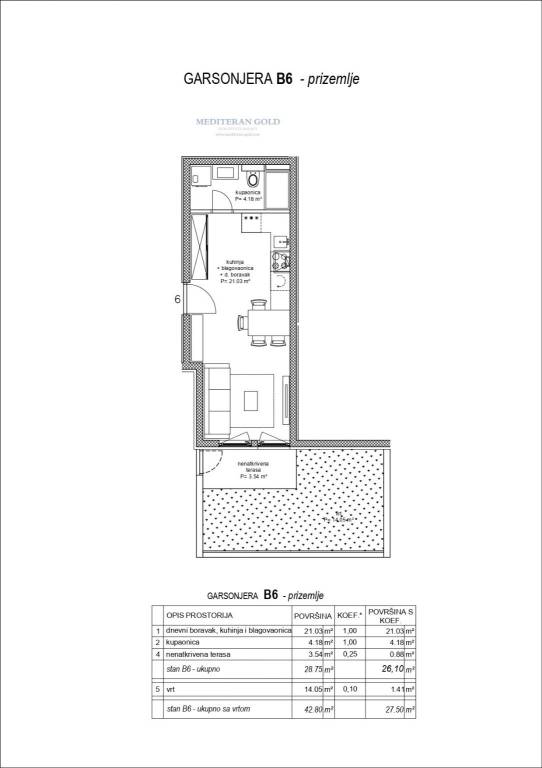 B6, 27,50m2, garsonjera, prizemlje-ink