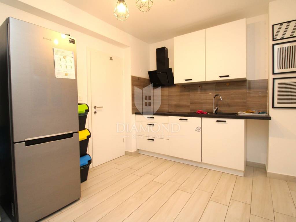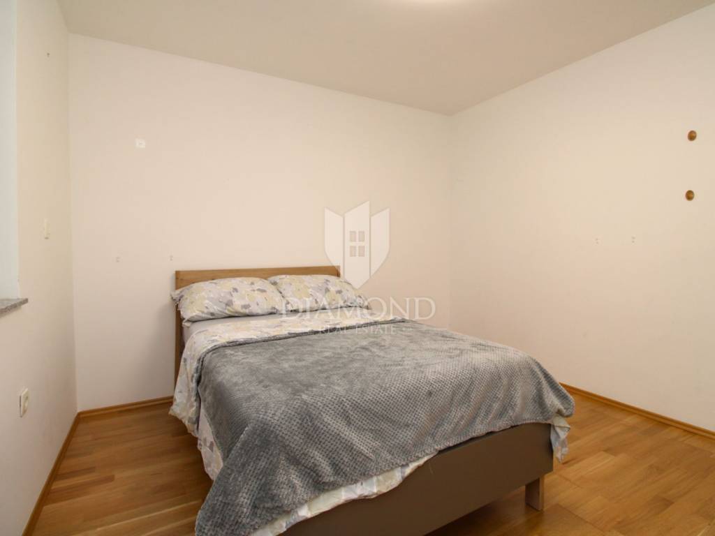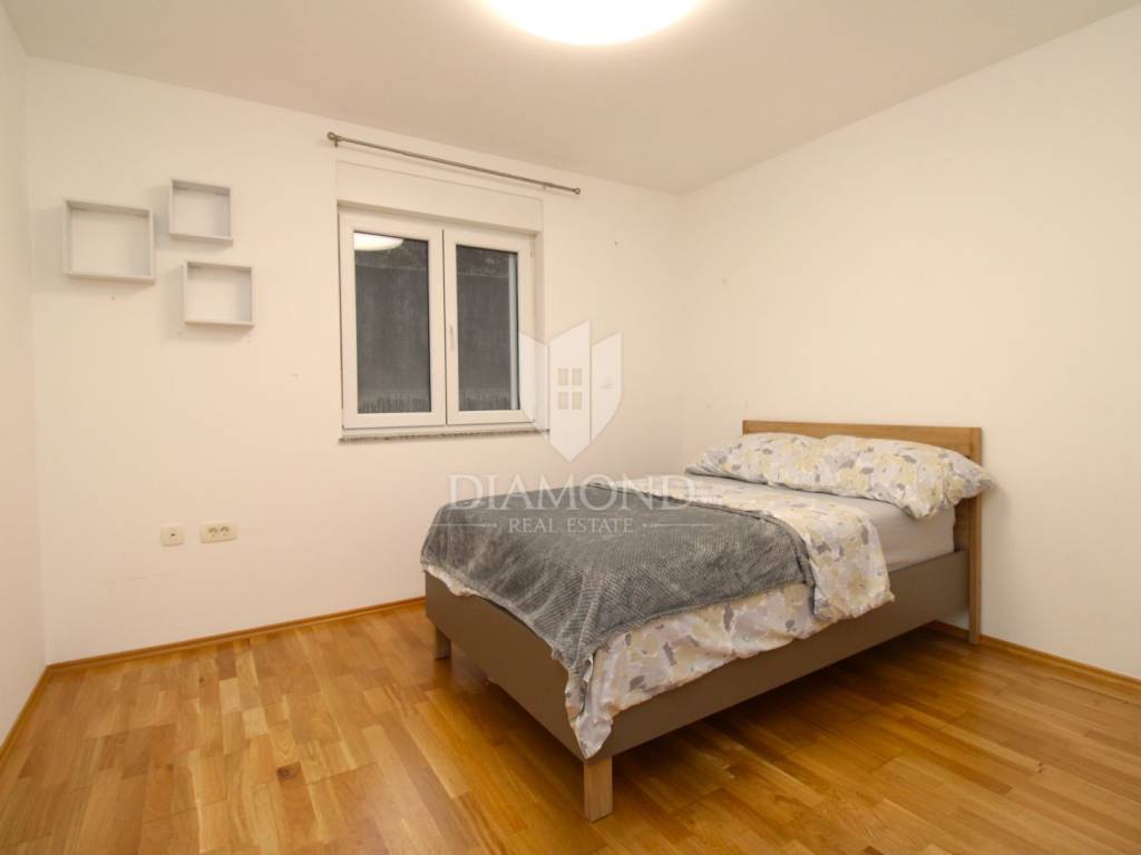 For sale is a modern apartment in a new residential building, located in a quiet area of Sušačka Draga. The apartment has a total surface area of 88 m² and features an excellent layout and contemporary design. It consists of a large living room with dining area, a modern kitchen, two bedrooms and a bathroom. From the living room there is access to a spacious balcony, while one of the bedrooms has direct access to a private garden of 60 m², ideal for relaxation or outdoor living.
