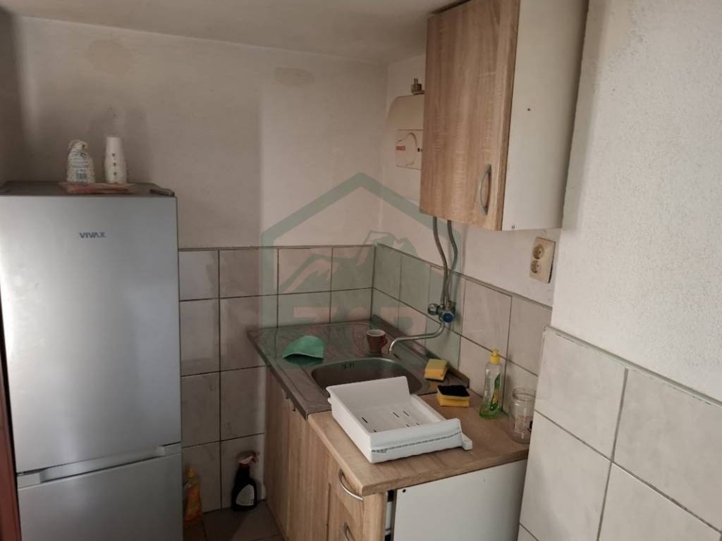 A basement two-room apartment in a residential building in Perušić is for sale, with a total area of 44 m. It consists of a kitchen, living room, bedroom, bathroom, and hallway. The apartment also includes a storage room/woodshed.