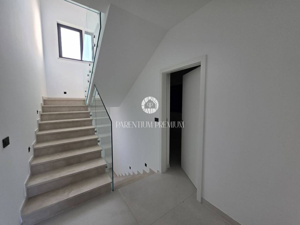 Istria, Porec A terraced house for sale in a new and modern building, only approx. 800 m from the sea, this is the first house in a row.Contains: ground floor, first and second floor. The ground floor of the house consists of an entrance hall, kitchen, living room with kitchen and dining room, toilet and storage room under the stairs.Through large glass walls you can access a covered terrace and a small garden of approx. 40m2.An internal staircase leads to the first floor, where there are two bedrooms, each with its own bathroom and a covered terrace with a floor plan of approx. 7 m2, the second floor consists of one bedroom, a bathroom and a partially covered terrace with a beautiful open view. to the sea and the environment.Electric underfloor heating throughout the apartment and air conditioners are there for heating and coolingThe property is subject to VAT.The planned completion of construction is at the end of 2024.Due to its attractive location and proximity to the sea, this property is an ideal investment for both tourist rental and family life.