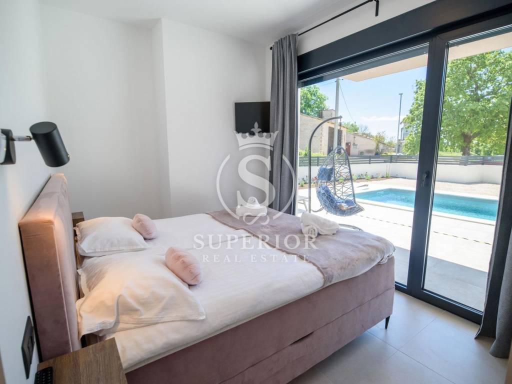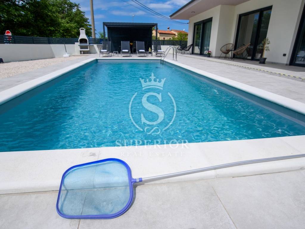 For sale is a luxury single-storey villa with a pool, with a total living area of 135 m², located in a peaceful and green area of Kanfanar, just about twenty kilometres from Rovinj, its beaches and charming old town.