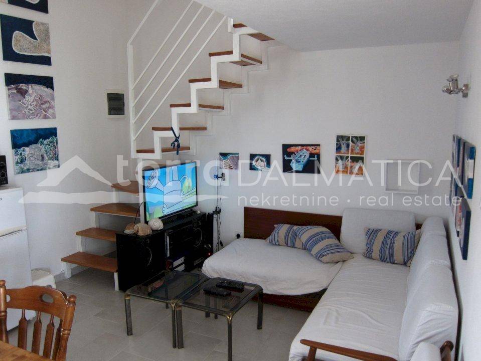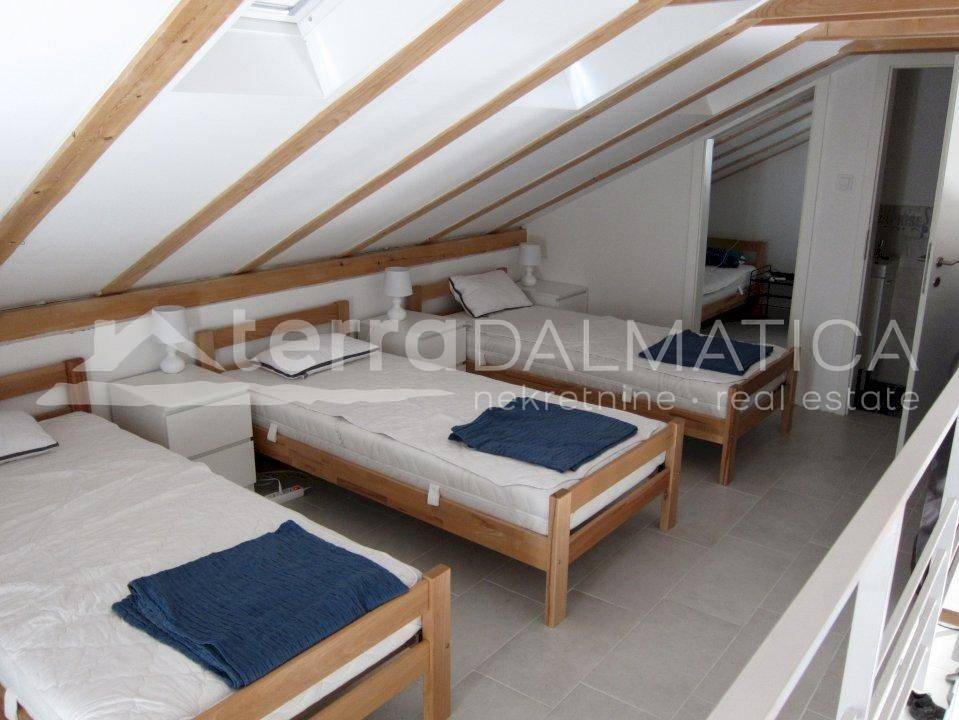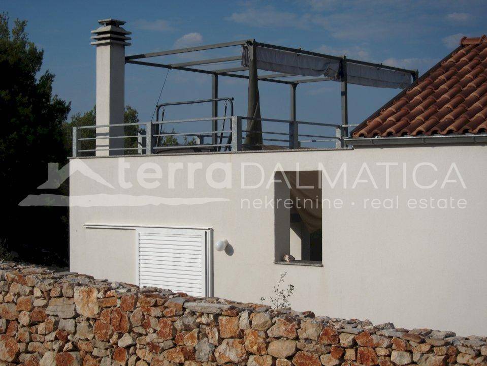 A nice house with a sea view is for sale on the island of Zirje. It is located on a gentle hill with a beautiful view of the bay. The house is designed as one residential unit with a basement. The livin area consists of a ground floor (35 m2) with a kitchen with, living room and a bathroom, and a gallery (30 m2) with sleeping area (three beds + a double bedroom) and a toilet. From the ground floor there is acces to porch that leads to the summer kitchen with a large fireplace (26.50 m2). From the gallery there is acces to the terrace - lookout (21.68 m2) with a beautiful view to the northeast. The large garden with two driveways is decorated with various Mediterranean plants and olive trees. The island of Zirje is full of charming bays and virgin beaches, pine forests and tame fields. The sea around the island is particularly impressive and simply enchants divers, fishermen and big game fishing enthusiasts. It is also surrounded by the Kornati National Park. The interior of the island is also known for its rich hunting ground, which makes it an interesting destination for hunting tourism. The island of Zirje has organized and marked bicycle paths that can easily reach most bays. Contact our agent and schedule your tour.