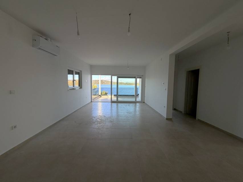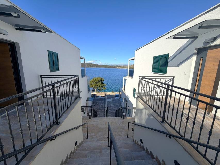 In the vicinity of Šibenik , in the quiet village of Šparadići , an extremely attractive penthouse is for sale located in the first row to the sea. The apartment is located on the second floor of a modern new building and represents a combination of contemporary architecture, comfort and a superb location. The distance to the sea of ​​only five meters is one of the key advantages of this property.
