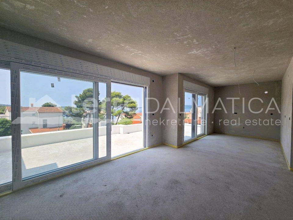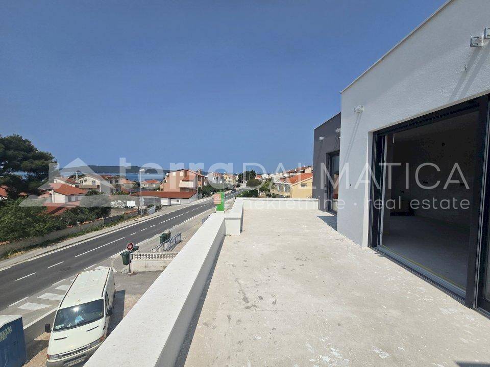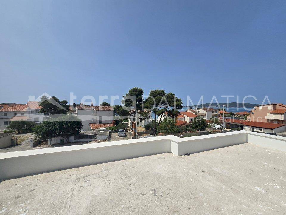 For sale is a spacious and functional apartment located on the second floor of a residential building in Brodarica, with a sea view that will captivate you. This apartment, with a total area of 94 m² and a usable net area of 79.44 m², offers a comfortable and quality living space for a family or an investment opportunity for tourist rental. It consists of a spacious hallway leading to three bright and cozy bedrooms, two bathrooms, and a living room that is perfect for relaxation and socializing. The kitchen is connected to the dining area, allowing for pleasant family meals, and from the dining room, there is access to a large terrace of nearly 28 m², where you can enjoy the sea view and pleasant summer evenings. The apartment also includes two parking spaces. The building is located in a quiet part of Brodarica, close to all necessary amenities — shops, restaurants, and of course, beautiful beaches. This is an ideal opportunity for those looking for a home near the sea or an attractive property for investment. For any additional information or to arrange a viewing, please feel free to contact us. We will be happy to assist you and provide all necessary details.