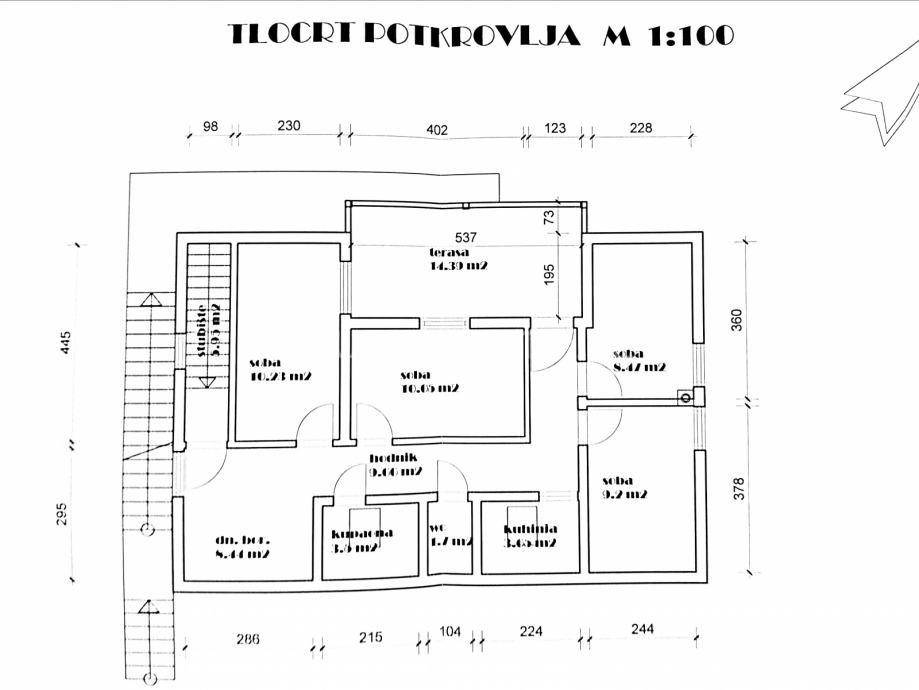 The total living space is 319 m2, while the land plot measures 430 m2. The house was renovated in 2011. Top floor is attic apartment that has 4 bedrooms, large terrace, bathroom and additional toilet and kitchen. Same layout is apartment on the second floor. First floor apartment has 3 bedrooms, bathroom and additional toilet, storage room, large kitchen with dining area and large terrace. Ground floor apartmen has 84 m2, but is not finished inside, so it can be arranged according to your ideas, or can be used as storage space.
