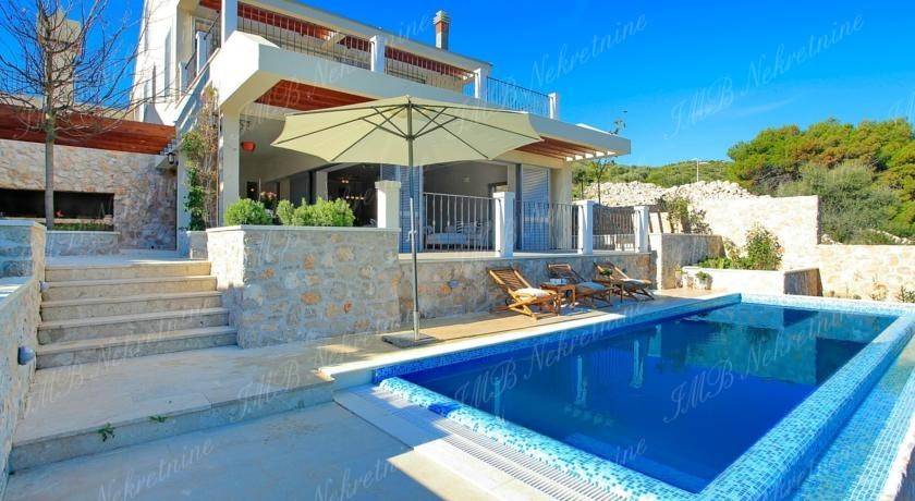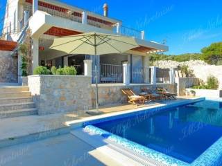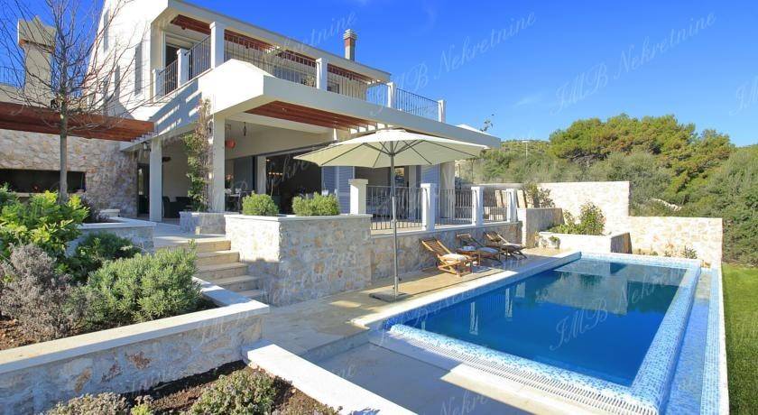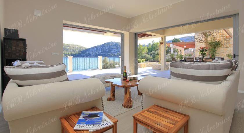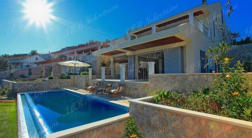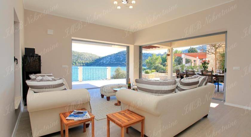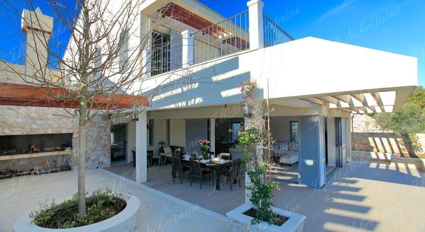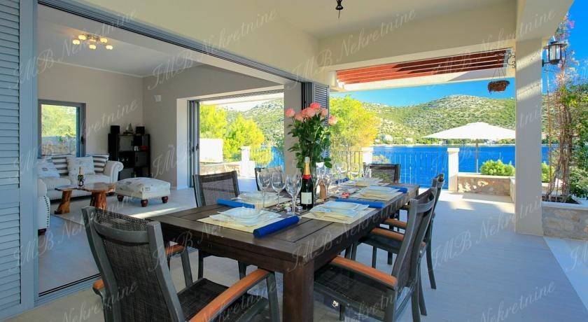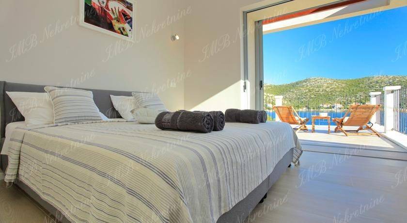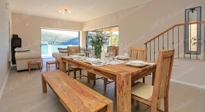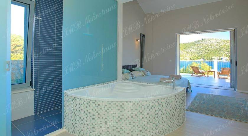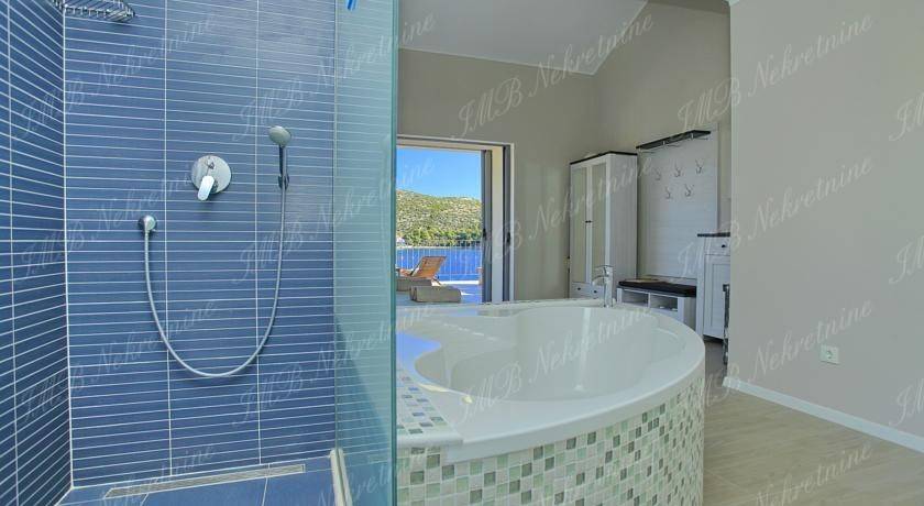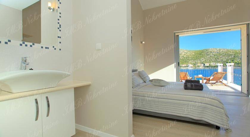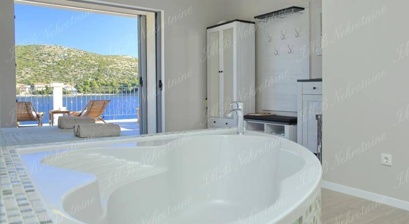 CALL FOR PRICE. Newly built villa of 220 m2 in a secluded bay is a true oasis of peace and tranquility.FIRST ROW BY THE SEA!EXCLUSIVE LOCATION!It spreads over a land area of 610 m2 which is a large spa pool and sunbathing and relaxation space.The ground floor has a living room with kitchen and dining room, bedroom with bathroom, shared bathroom and pantry.The internal stairs leads upstairs where is one more living room with terrace and two bedrooms with private bathrooms.On the Gallery is a bedroom with bathroom.Below the villa is a beach with a pier and private place. More information at IMB Real Estate Ltd. Dubrovnik