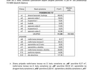 In addition to 111.39 m2 of net living space, the apartment has a significant number of additional parts such as a covered terrace with storage in the surrounding area of 29 m2, and a large part of the garden area of 117 m2. The specialty of this apartment are two covered terraces that provide an incredible experience. One of them, measuring 33.12 m2, is equipped with a jacuzzi, creating an ideal place for relaxation with a beautiful sea view. The second is 6.17 m2 and is accessed from the bedroom. In addition, the apartment also includes a storage room located on the second floor and a parking space.