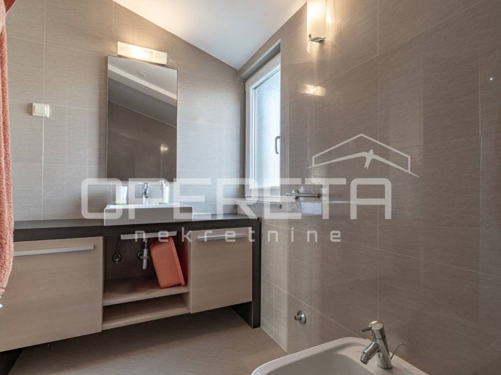 A penthouse for sale located in Pješčana Uvala. This apartment bathed in natural light offers a net area of 111.39 m2, with a spacious living room and a modernly designed kitchen. In addition, this apartment includes three comfortable bedrooms, two bathrooms with underfloor heating and a spacious hallway. It is important to emphasize that the apartment is fully furnished and is being sold as such.