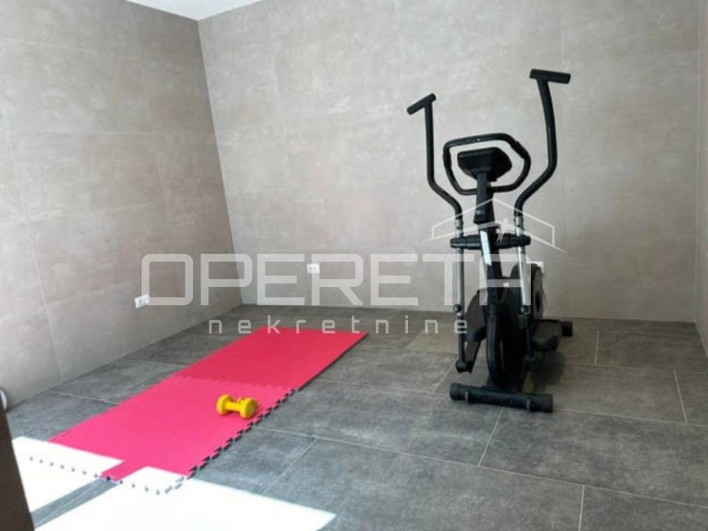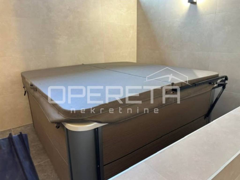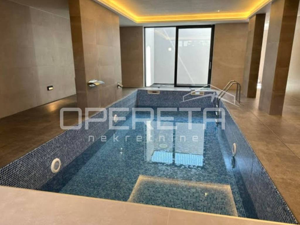 U donjem dijelu prizemlja nalazi se zatvoreni grijani bazen, sa spa zonom, koja uključuje prostor za relaksiranje, saunu, tuševe, jaccuzi i teretanu. KUPCI NE PLAĆAJU POREZ NA PRIJENOS VLASNIŠTVA.