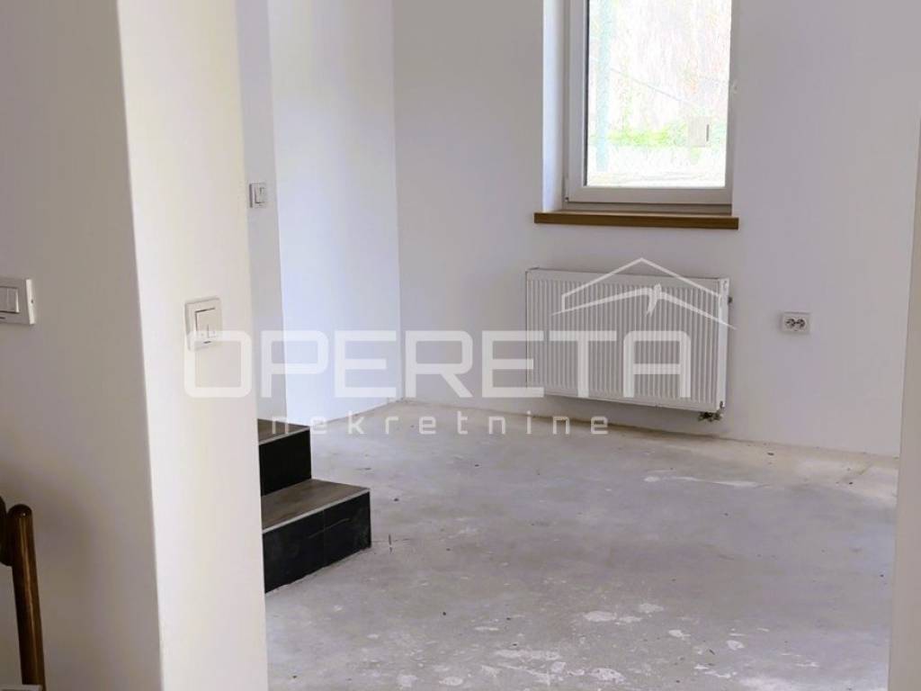 Stan na dvije etaže (prizemlje-prvi kat) u novogradnji od 76,36 m2 u centru Varaždinskih toplica, 80-ak metara od Minerve i liječilišta u strogo zaštićenom centru grada. Vrlo mirna lokacija bez prometa, blizu svih važnih sadržaja. Kuća novogradnja u stilu tradicijske gradnje, sa energetskih certifikatom A u roh- bau izvedbi. Potrebno je ugraditi parkete u sobe i unutarnju stolariju. Stan ima dimnjak za kamin na kruta goriva, kao alternativa grijanju na plin, ili guštanju uz kamin, što je vrlo rijetko u novogradnji. Sastoji od prostorija u prizemlju: smočnica,kuhinja i blagovaonice, dnevnog