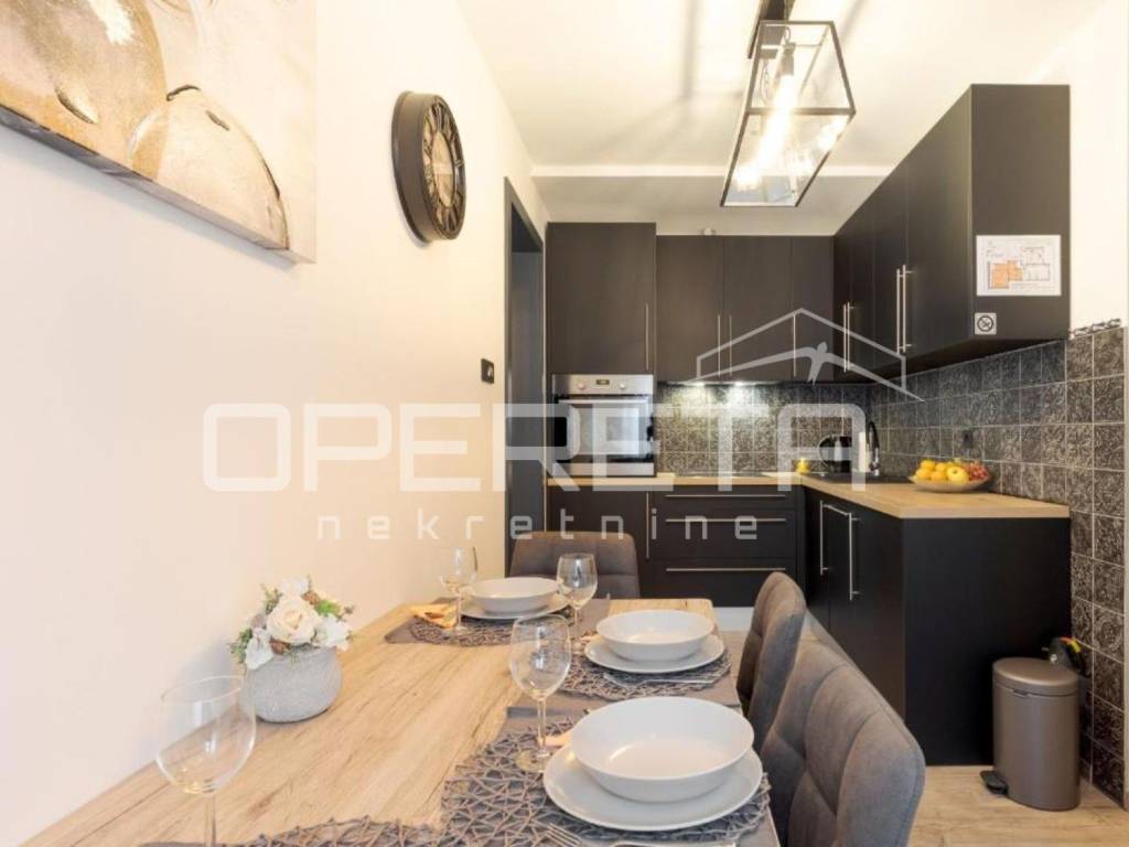 Stan je temeljito i luksuzno adaptiran 2020. godine, uz pažljivo birane materijale, modernu opremu i dizajnerske detalje.