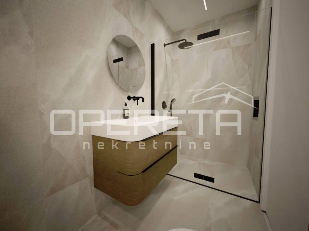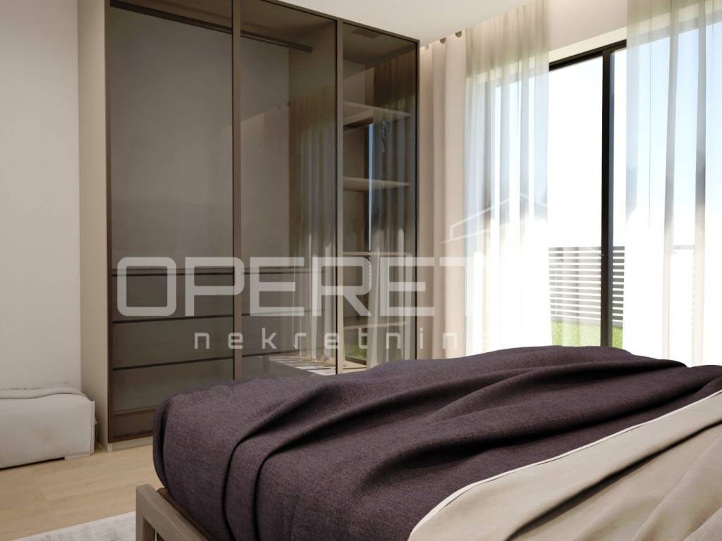 The apartment is located on the ground floor of a modern building with an elevator and is characterized by top-quality construction and a carefully designed layout. Thanks to large glass surfaces, the interior is bright and airy, while the pleasant garden of 80 m offers the perfect place to relax and enjoy the outdoors.