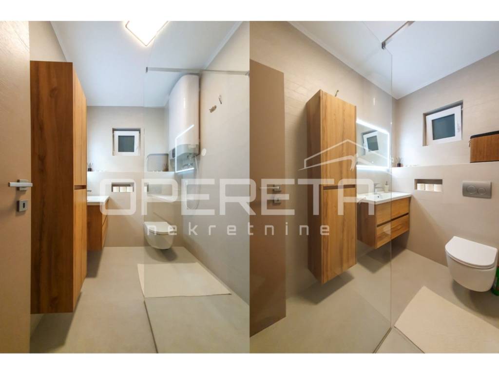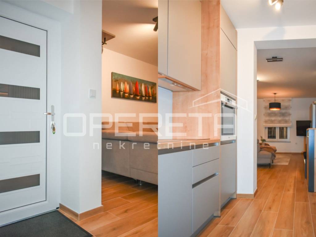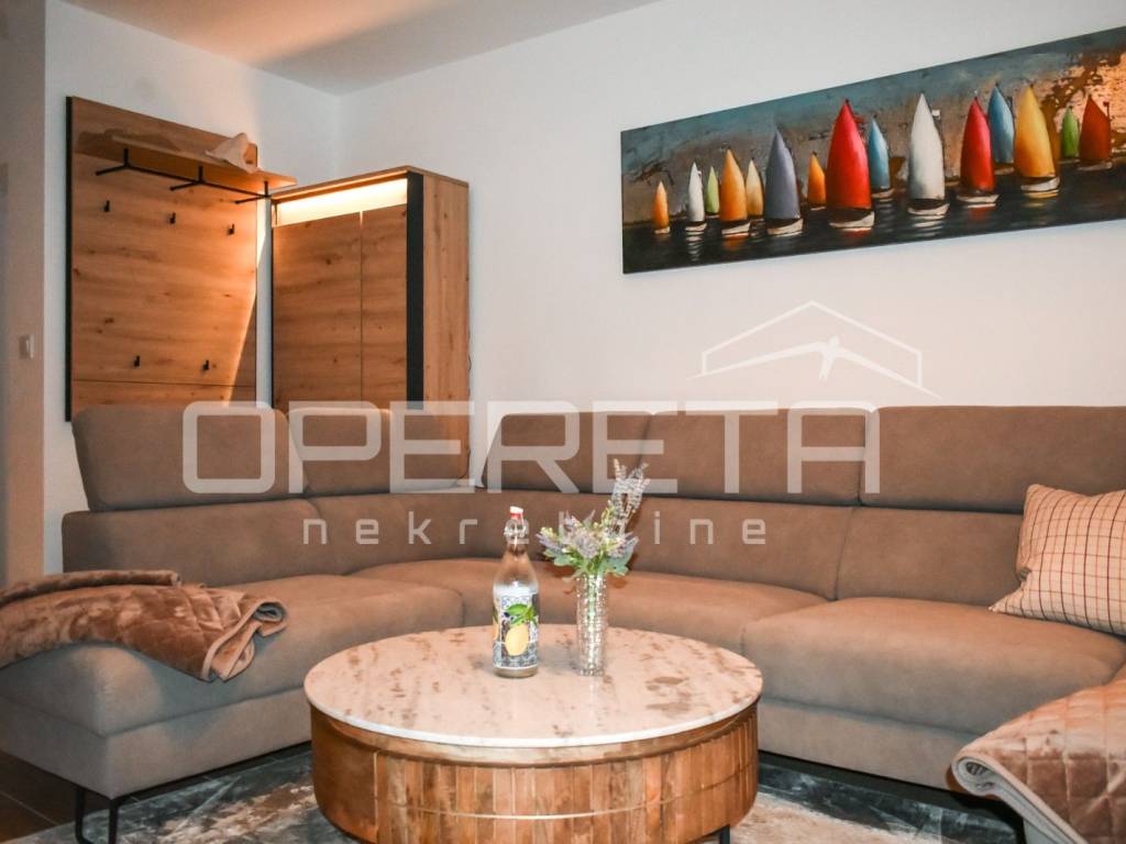 Just a few steps from the crystal-clear sea and a pebble beach hidden in the shade of a pine forest, this elegantly designed apartment is located in the peaceful Rožac area of Okrug Gornji.