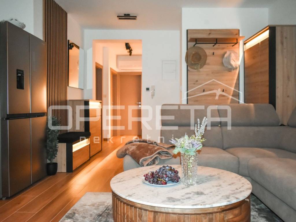 Situated on the second floor of a smaller residential building, this two-bedroom apartment, with a surface area of 59.08 m, offers the perfect balance of comfort, modern design, and Mediterranean lifestyle. Thanks to its northeastsouthwest orientation, it is bathed in natural light and sunshine throughout the day.