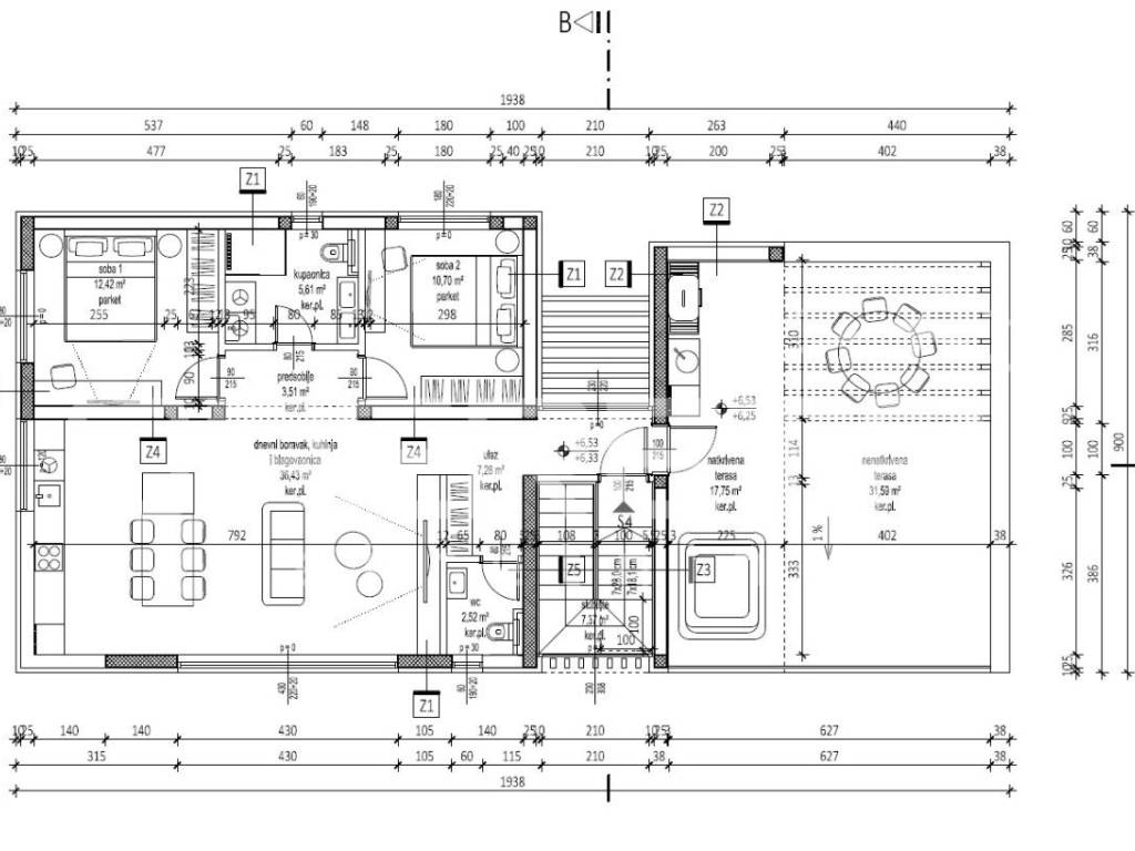 Located on the second floor of the building, this penthouse has a total area of 95.24 m, of which 75 m is enclosed living space.