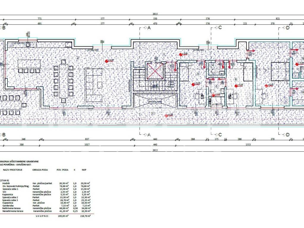 Na odličnoj lokaciji u gradu, novogradnja s useljenjem ljeto/2027.g. urbana vila s predivnim prostranim 4-sobnim stanom - penthouse, NKP 119,70 m2.