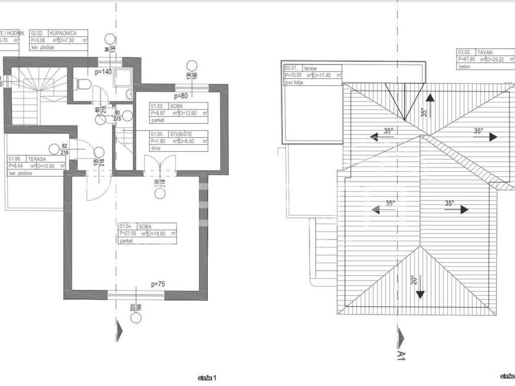 Iznad prvog kata se nalazi neuređeni tavan koji daje mogućnost uređenja još jedne sobe.