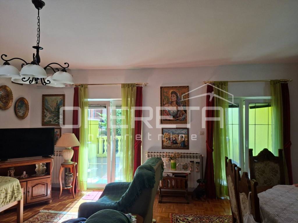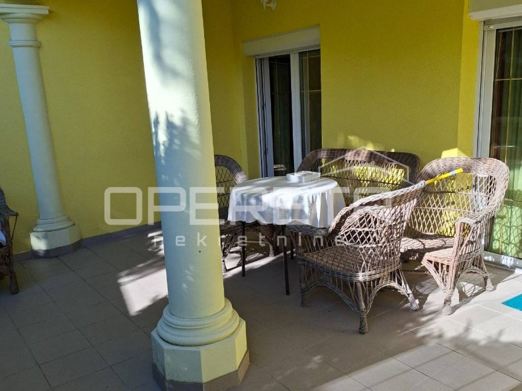 Kuća se sastoji od prizemnog djela u kojem se nalazi prostrani hodnik (podovi su od mramora), veliki dnevni boravak i kuhinja, kupaona (wc i tuš kada), ostava i velika prostrana terase.