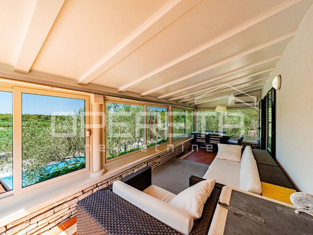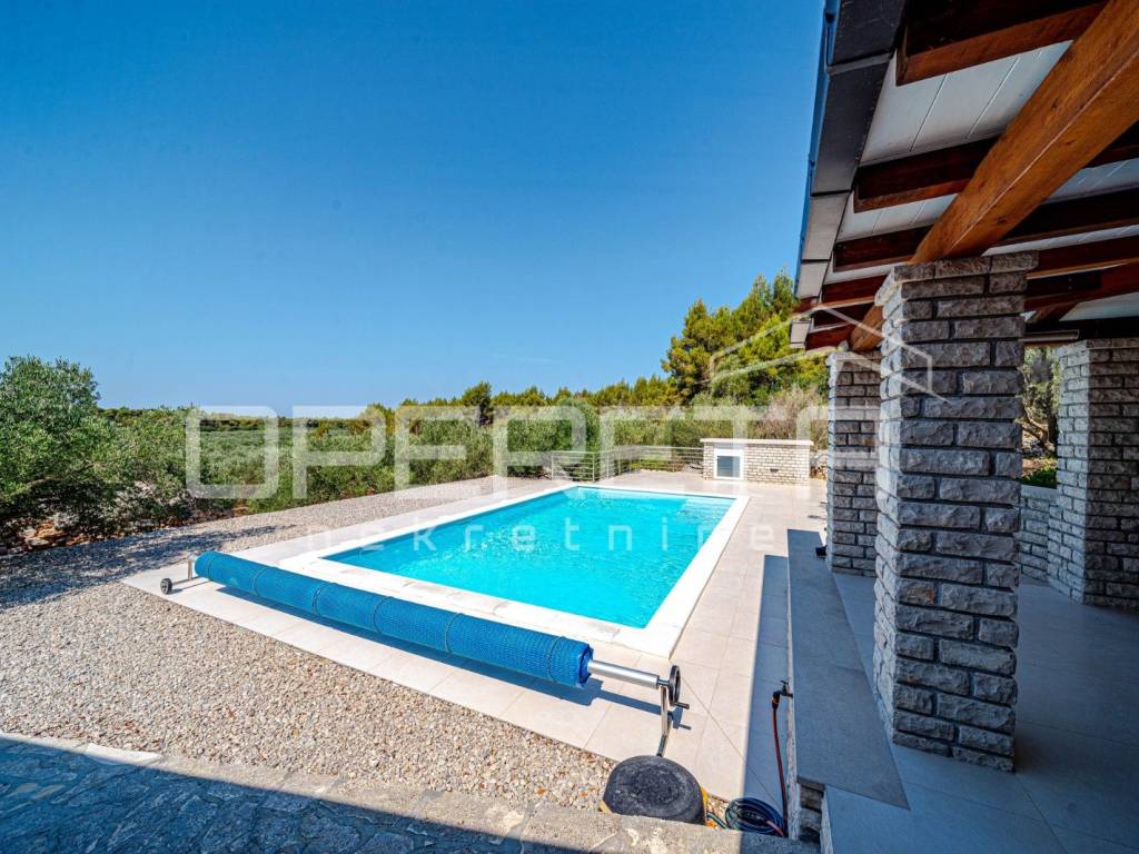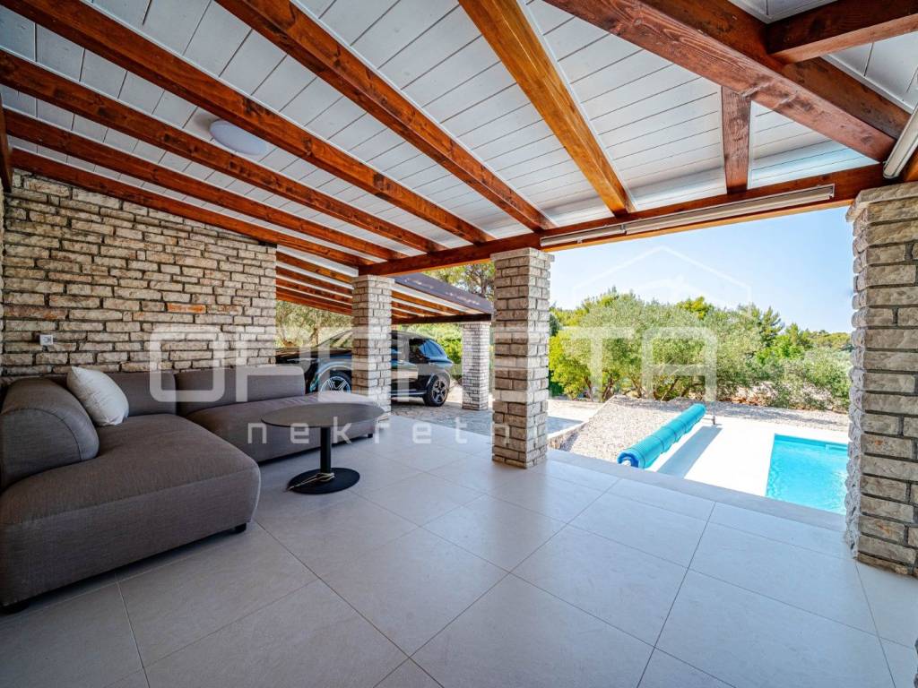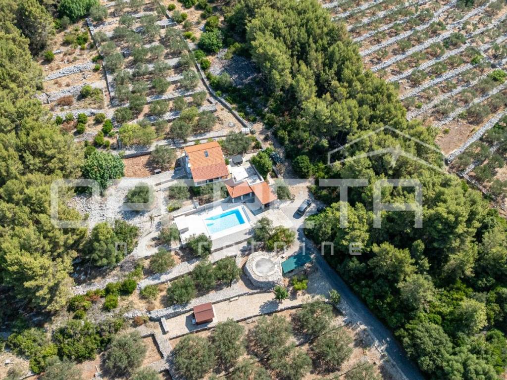 Located on the western side of the island of Korčula, in the peaceful and protected area of Potirna, this exclusive house combines top-level comfort, Mediterranean charm, and complete privacy. Surrounded by manicured nature, an olive grove, and authentic Dalmatian vegetation, and just a ten-minute drive from Vela Luka and approximately one kilometer from the sea, it offers the perfect setting for high-quality living or relaxing.