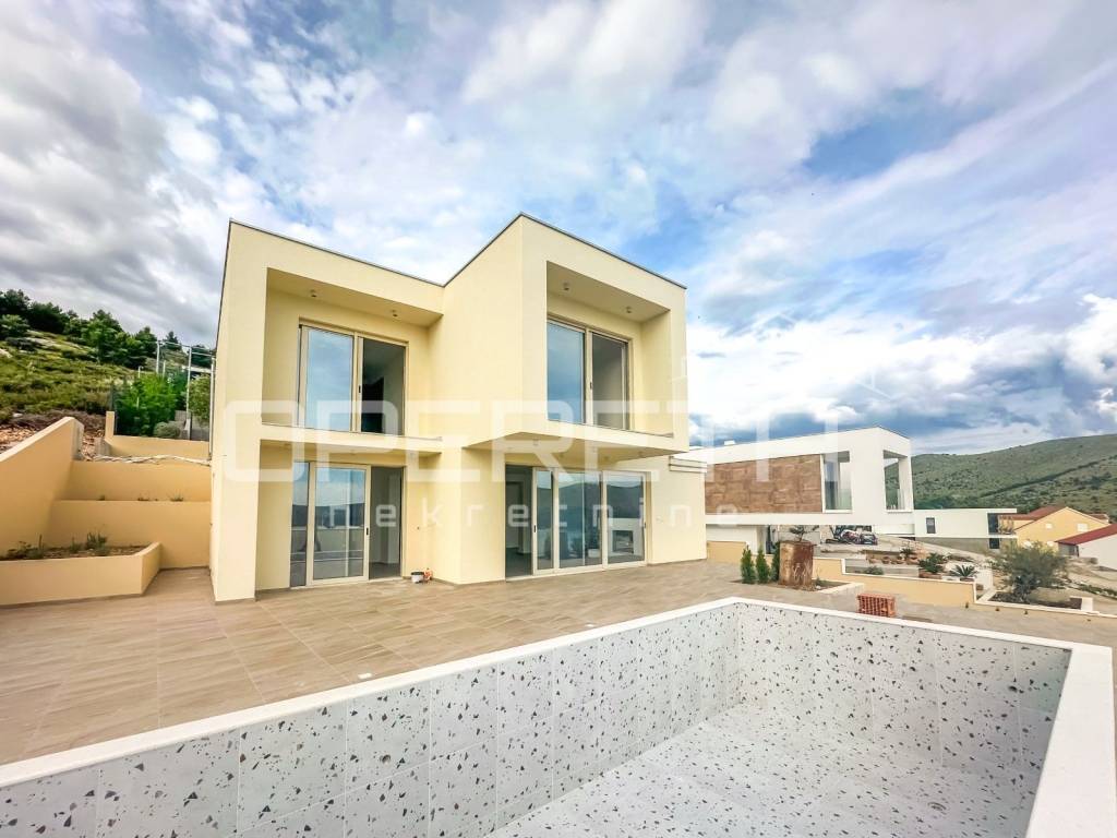 Modern villa with pool and sea view 150 m from the beach