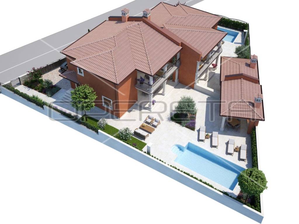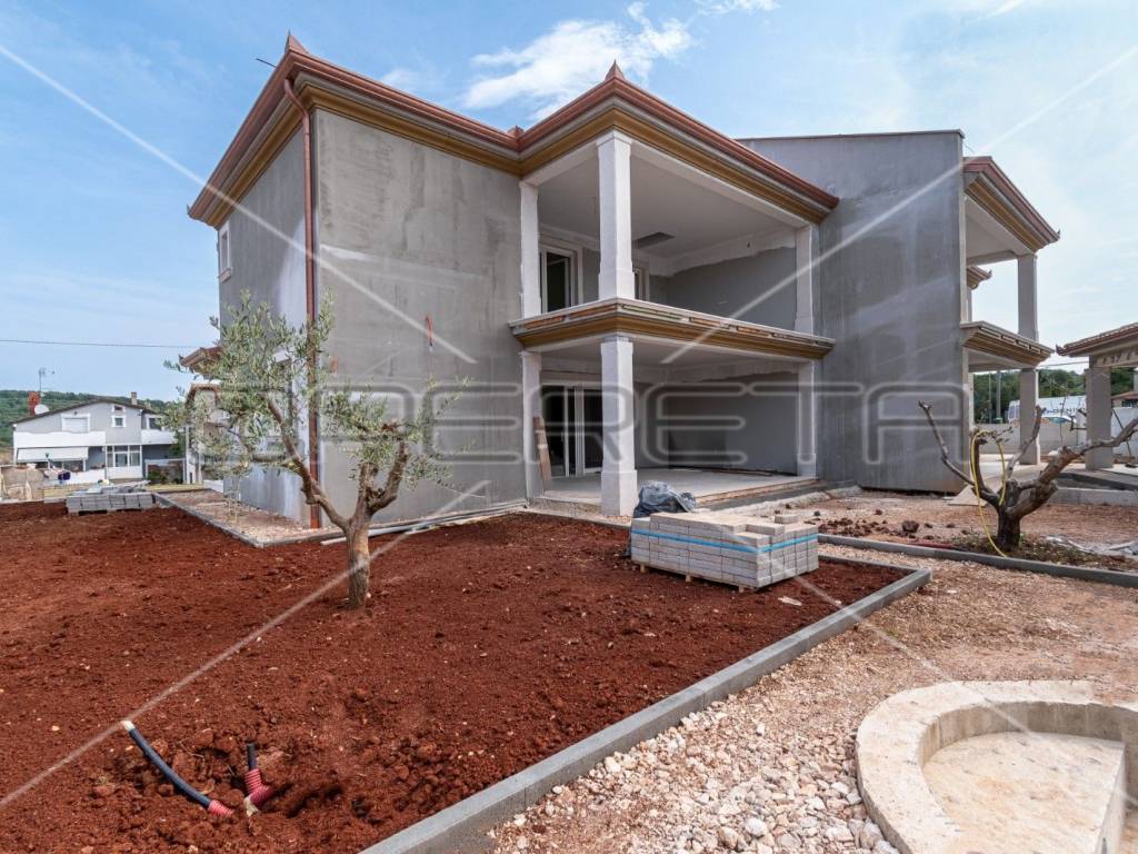 A house with a living area of 173 m2 distributed over two floors will be located on a plot of 440 m2. On the ground floor there is a living room with a kitchen and a dining room, a bathroom, a storage room and a covered terrace. The first floor is accessed by an internal staircase where there is a technical room, two bathrooms, 3 bedrooms each with access to the terrace. There is a beautiful swimming pool and sunbathing area in the landscaped garden, as well as another additional building that will serve as a summer kitchen. The heating is on the floor and the cooling is on air conditioners. If desired, there is also the possibility of installing a fireplace. The house has 2 parking spaces. High-quality construction materials and modern equipment will be used in the construction of the house. An interesting property that is not often found on the market, it is ideal for all lovers of traditional Istrian places and landscapes.
