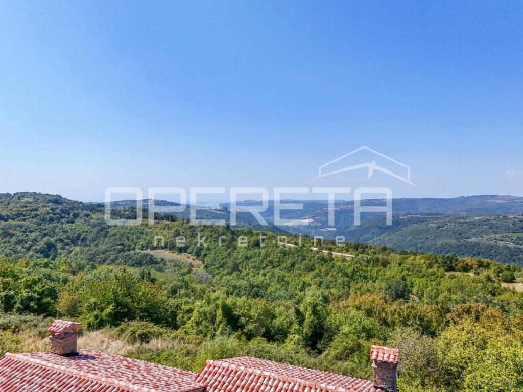 Positioned on the top of a hill, the house offers an impressive panoramic view of the surrounding hills, greenery and the sea, providing a true experience of the Istrian landscape.