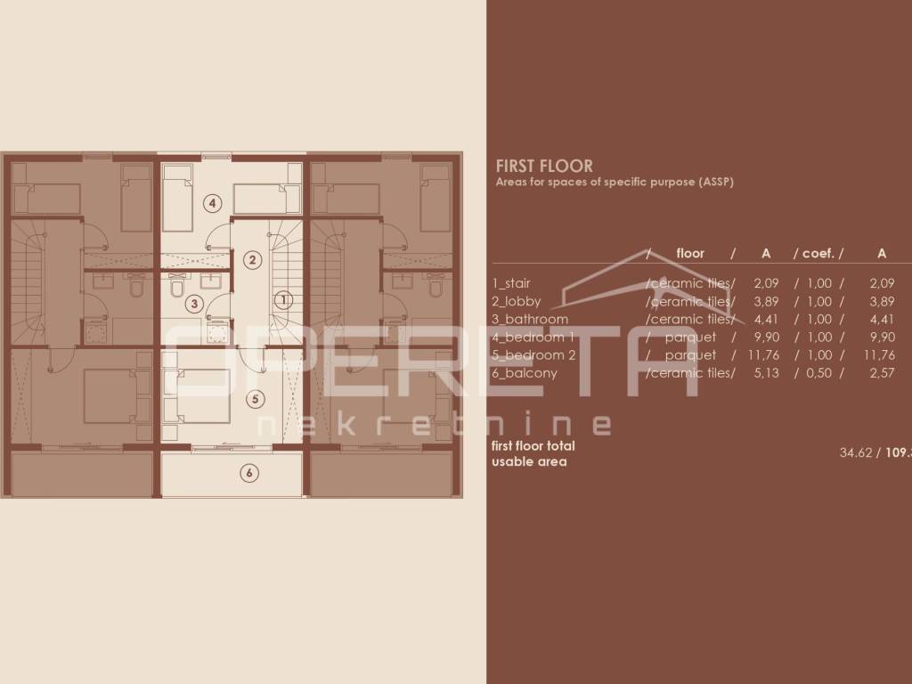The house has two parking spaces, and the garden itself provides additional privacy and aesthetic value. With its layout and architectural design, this unit offers all the advantages of a private house - its own entrance, yard, parking spaces and complete spatial autonomy. A special experience is provided by the jacuzzi on the ground floor, with a direct exit from the living room, which provides luxury and comfort even for the most demanding users.