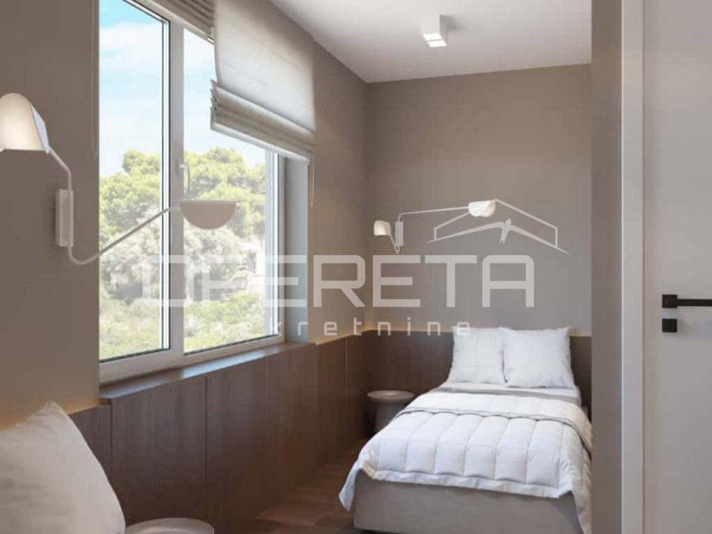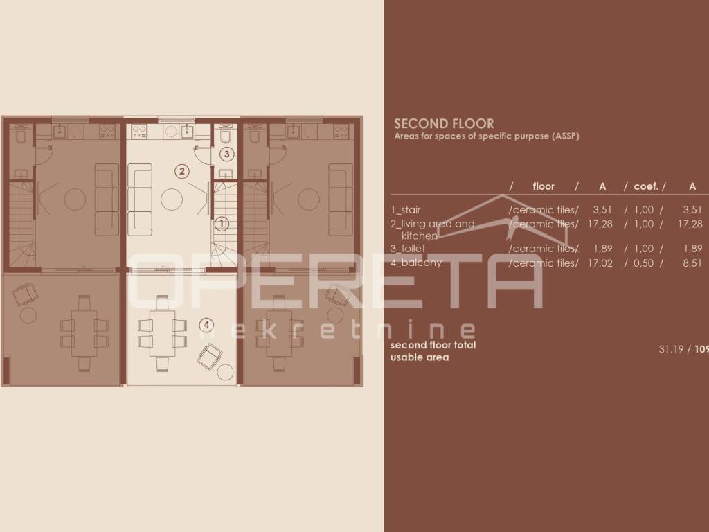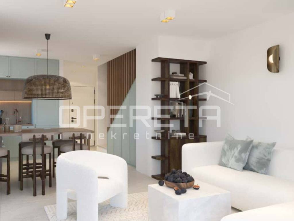 On the ground floor, there is a living room connected to the kitchen and dining room, from which there is access to a landscaped garden of 25 m, where a jacuzzi is provided - a detail that further emphasizes luxury and the possibility of complete relaxation in your own home. The toilet is located on the same level, while the internal staircase leads to the first floor. On the first floor there are two bedrooms, one of which has a terrace with a beautiful view of the sea, as well as a shared bathroom. On the second floor, there is another living room that opens onto a spacious terrace of 17 m with a panoramic view of the sea, and an additional toilet. If necessary, it can be converted into an additional bedroom.